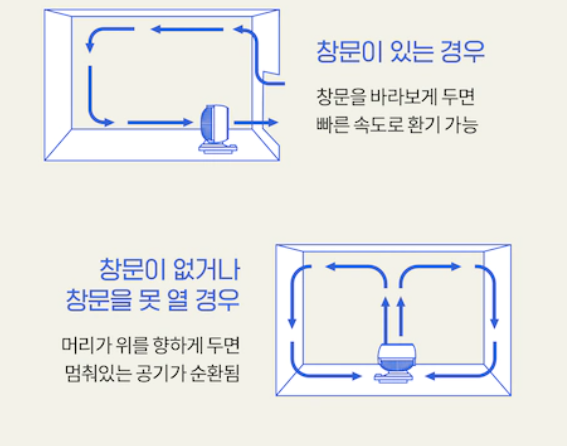 선풍기를 켜서 집 안의 공기를 순환시켜주세요. 공기가 습한 경우 주변에 퍼지면 습도가 내려가는데 도움이 됩니다. 또한 선풍기 바람은 습한 공기로 인해 우리 몸에 땀이 잘 마르지 않는 현상을 도와줍니다. 즉 높은 습도로 우리 몸의 땀이 잘 마르지 않는 현상을 해결해줍니다.