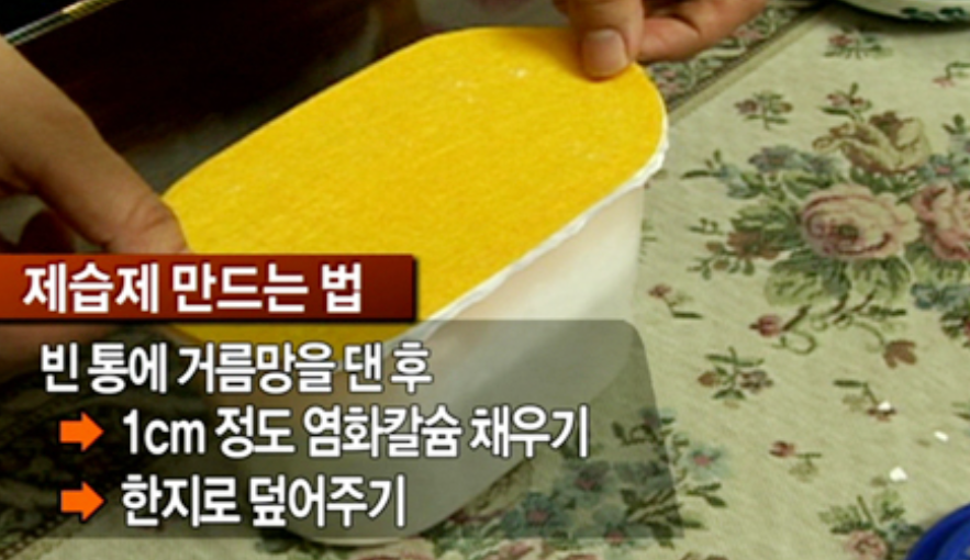 제습기나 에어컨을 사용할 수 없는 상황이라면, 제습을 도와주는 물건들을 이용하는 것도 좋아요. 신문지는 알뜰 제습제입니다. 옷이나 책들을 신문지에 싸서 놓으면 습기를 신문지가 대신 먹기 때문에 옷이나 책에 피해를 없애줍니다. 그리고 숯도 아주 좋은 알뜰 제습제입니다. 집안의 습기를 머금어 주는 숯의 기능인데요. 집구석구석 숯을 놓아도 집안 습도를 내려주는데 큰 도움을 줍니다. 그리고 물을 잡수는 하~마같은 제품을 집에서 만들 수도 있어요. 빈 통에 염화칼슘을 높이 1센티정도 채워주고 힌지로 덮어주면 물 잡수는 하~마가 됩니다.