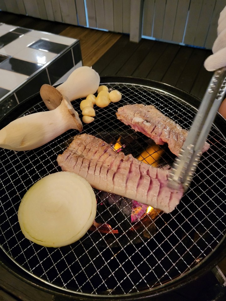 숯불에 구우면서 먹는 삼겹살이나 목살의 맛은 정말 끝내주는 건 삼척동자도 알 거예요.