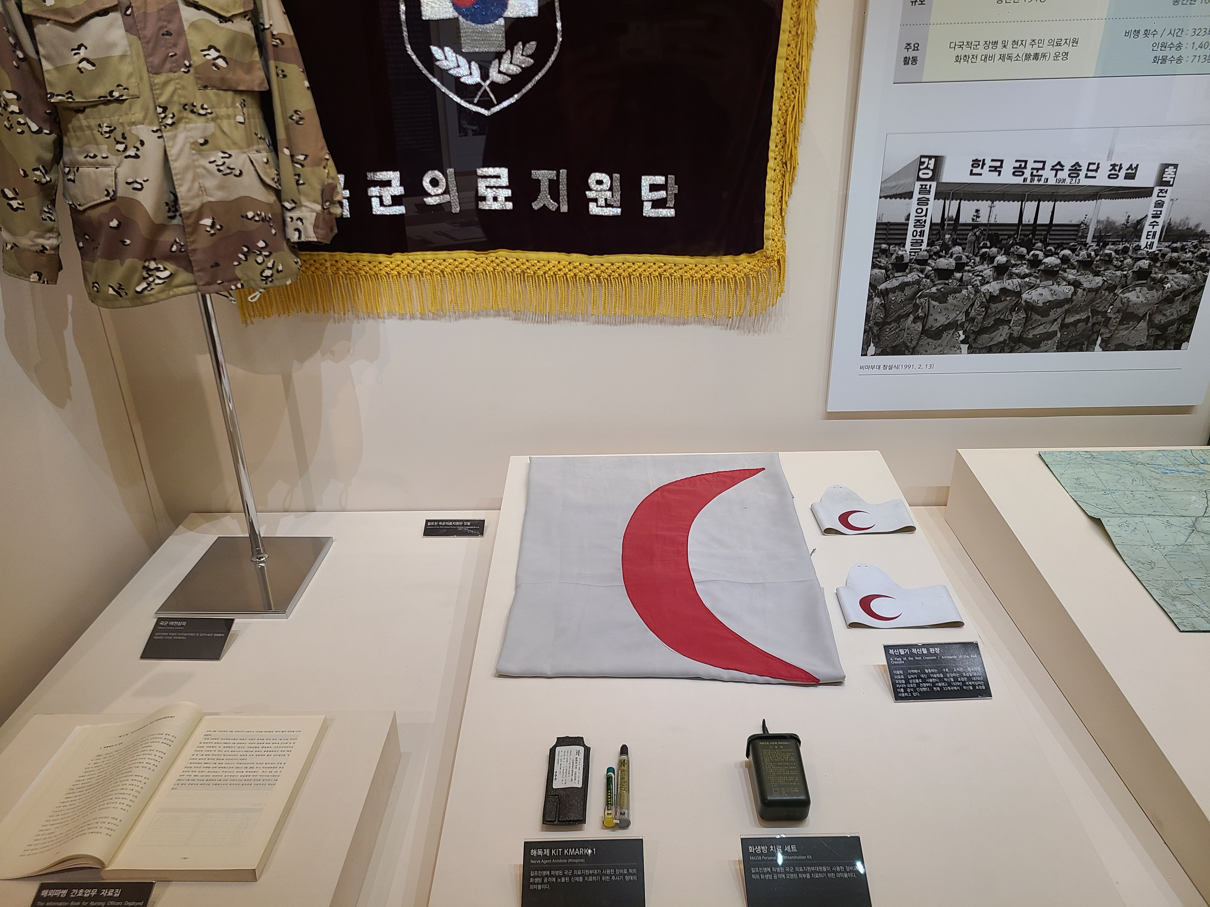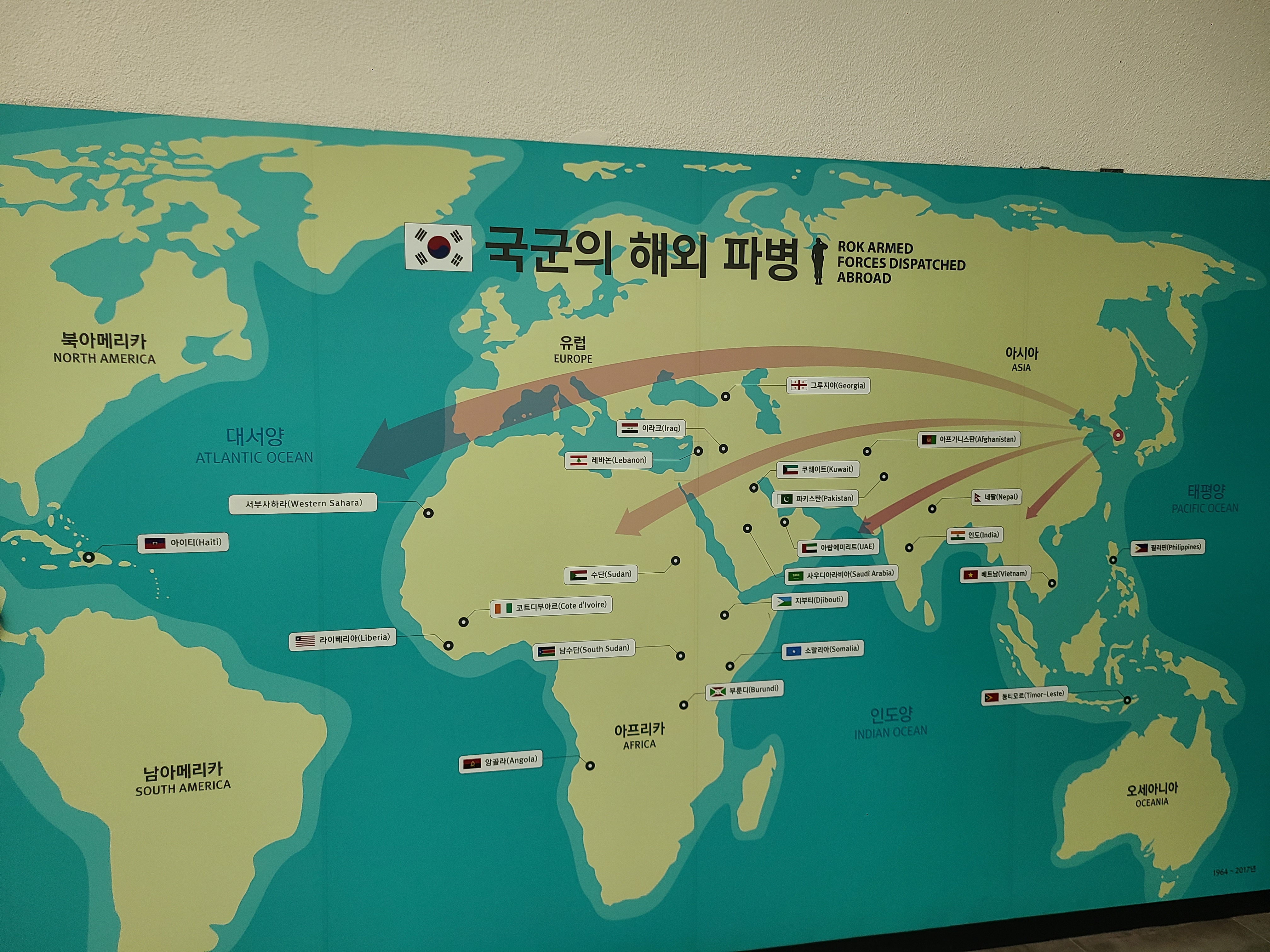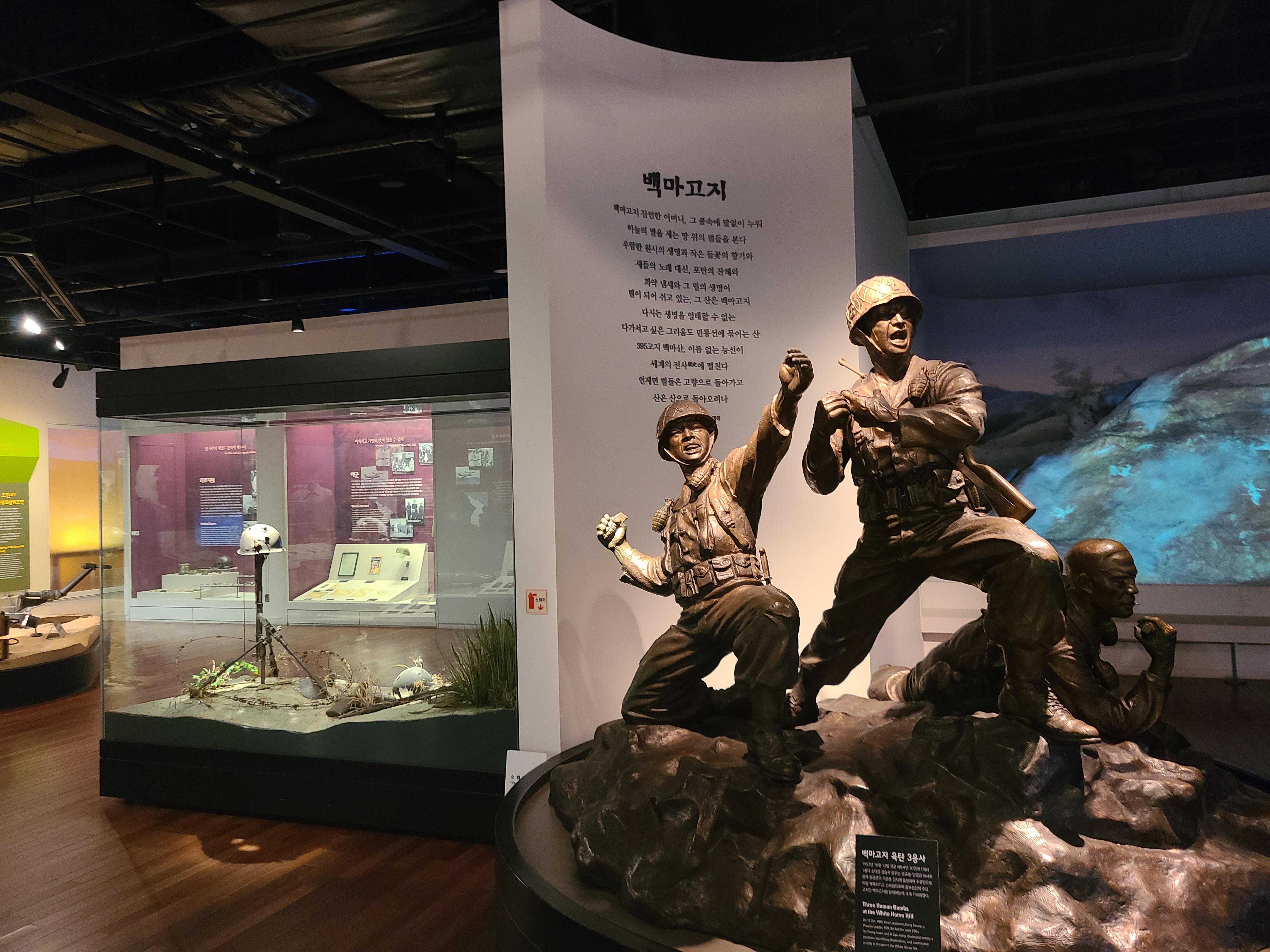 해외 파병실 전시회로 이동 중에 호국 추모실을 만나게 되었다. 조국의 평화를 위해 목숨을 바친 분들의 혼을 기리는 곳이었다. 그들의 희생과 헌신에 이 시대를 살아가는 국민의 한 사람으로서 경의를 표하게 되었다. 편히 잠드소서. 우리나라는 6.25 전쟁 때 유엔군의 연합과 동맹군의 도움을 받았다. 도움을 받기만 한 것이 아니라 다른 나라에게도 도움이 되는 파병을 여러 차례 하였다. 베트남 전쟁이 큰 예이다. 남 베트남과 북 베트남이 전쟁에도 한국군이 파병하여 큰 성과를 이루었다. 왜 지구촌엔 전쟁이 발발하여야만 하는 것일까. 아쉬움과 슬픔이 공존한다.