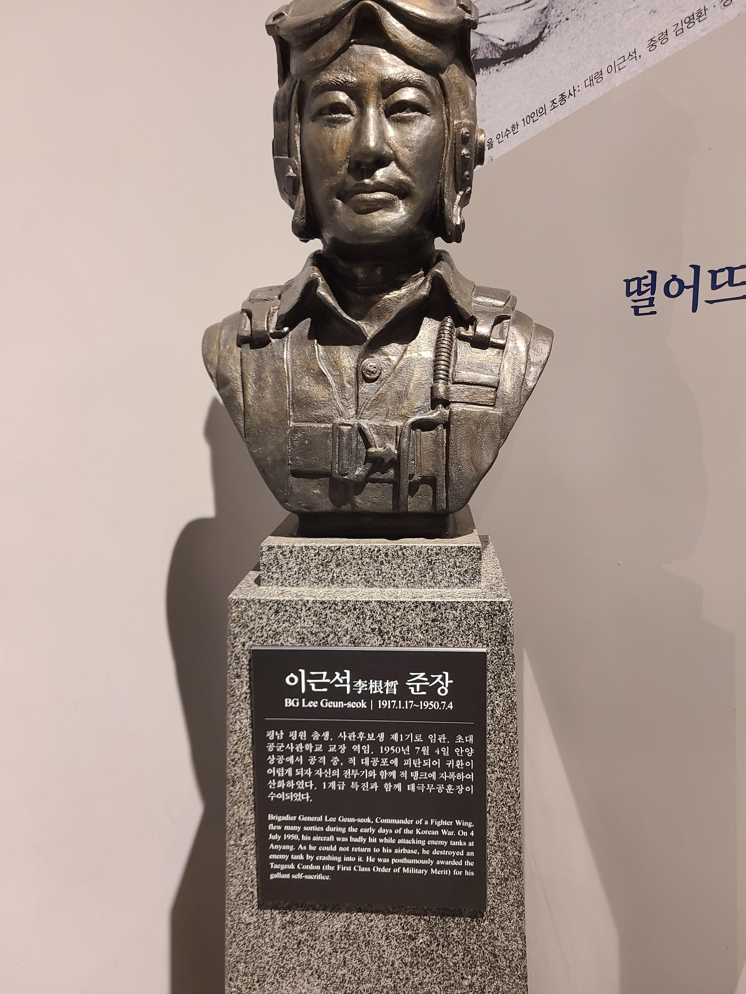 지금처럼 전투기의 성능이 뛰어나지 못한 6.25 전쟁 당시에는 항공기에 포탄을 손으로 직접 떨어트리며 적진을 공격하였다. 계급을 떠나 많은 조종사들이 맨 몸으로 포탄을 던지며 적진에 침투하였고 많은 이들이 산화되었다. 이곳에는 적진에서 자신을 희생하며 산화된 조종사들의 동상이 새워져 있었다. 포탄이 떨어지면 자신의 전투기와 함께 적의 탱크에 돌진하던 그들의 숭고한 희생정신에 다시 한번 숙연한 마음을 가지게 되었다.