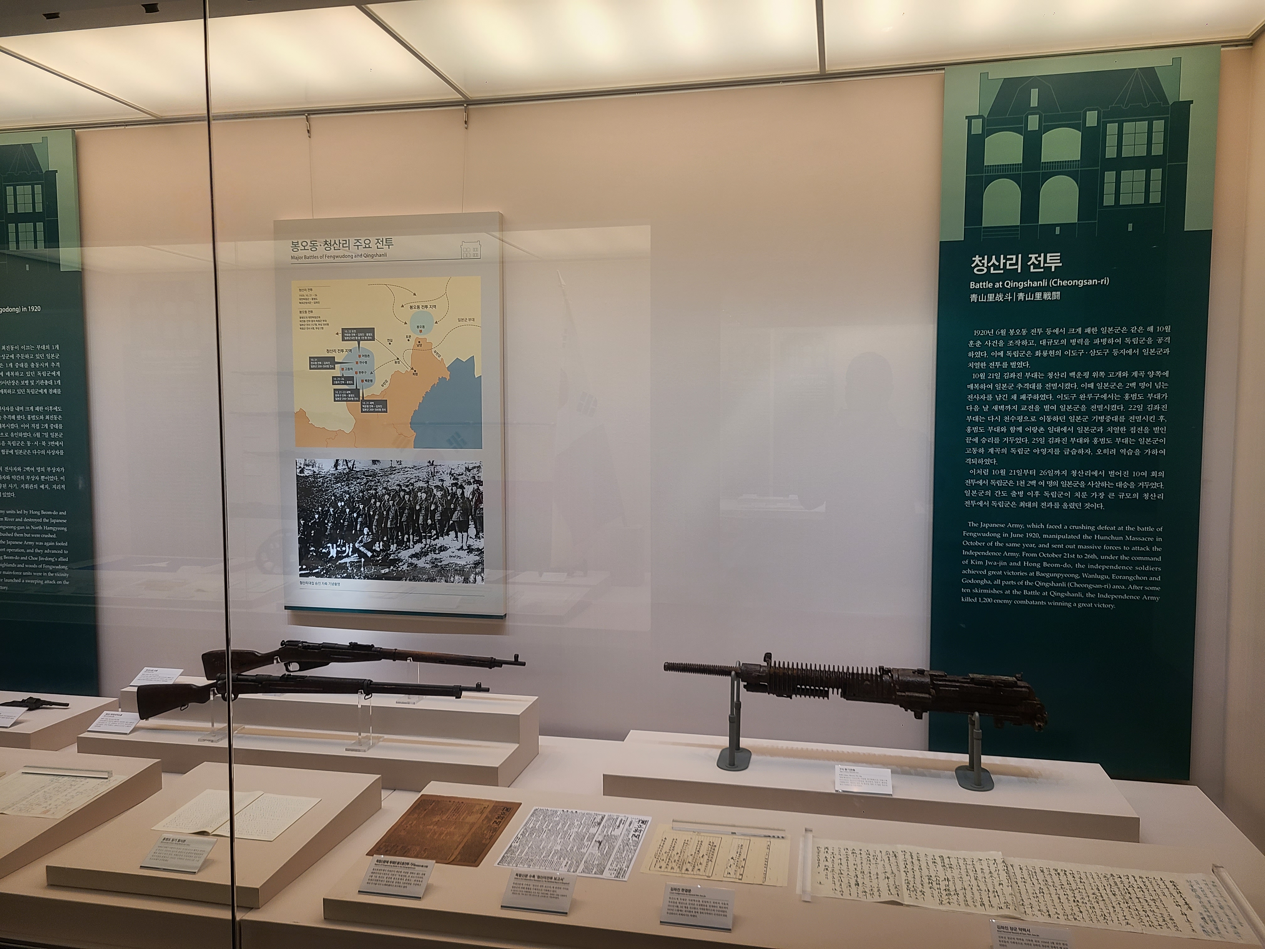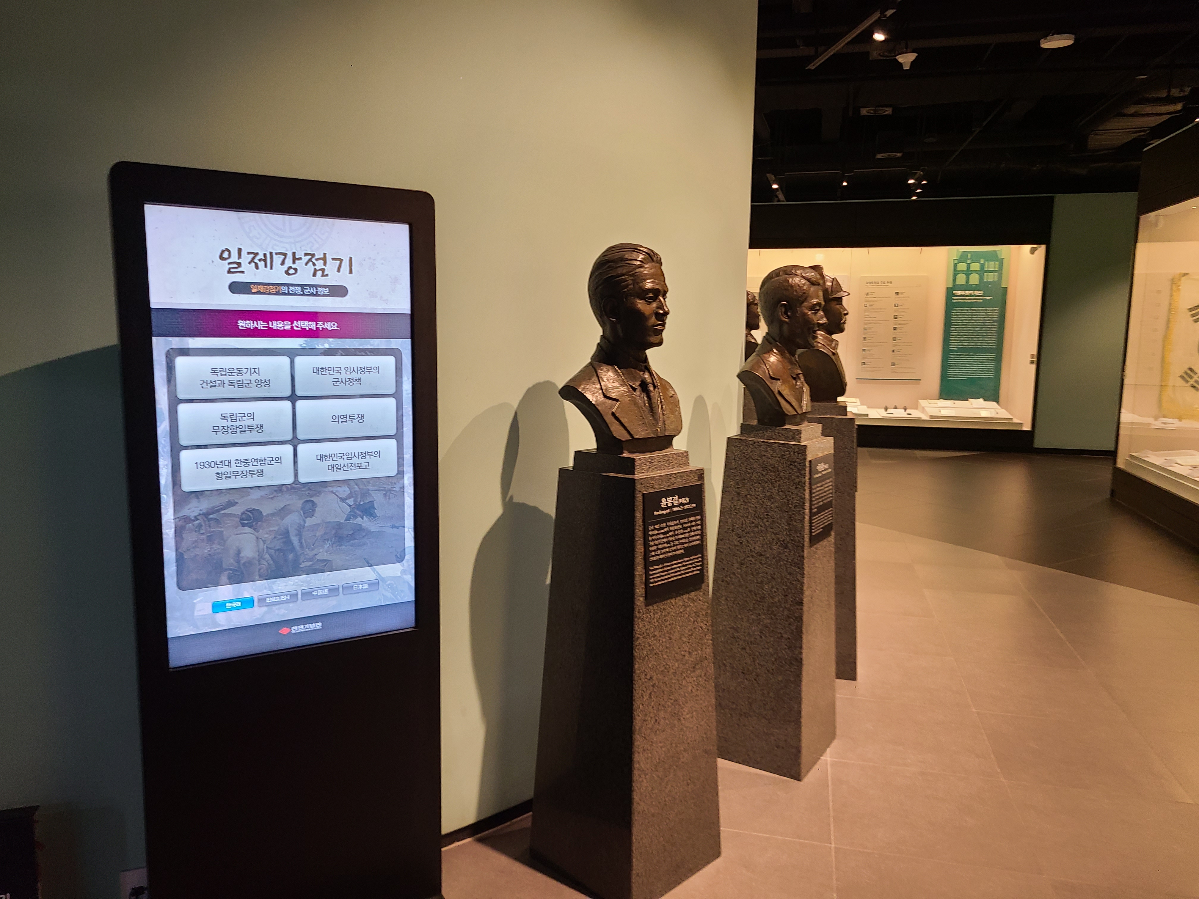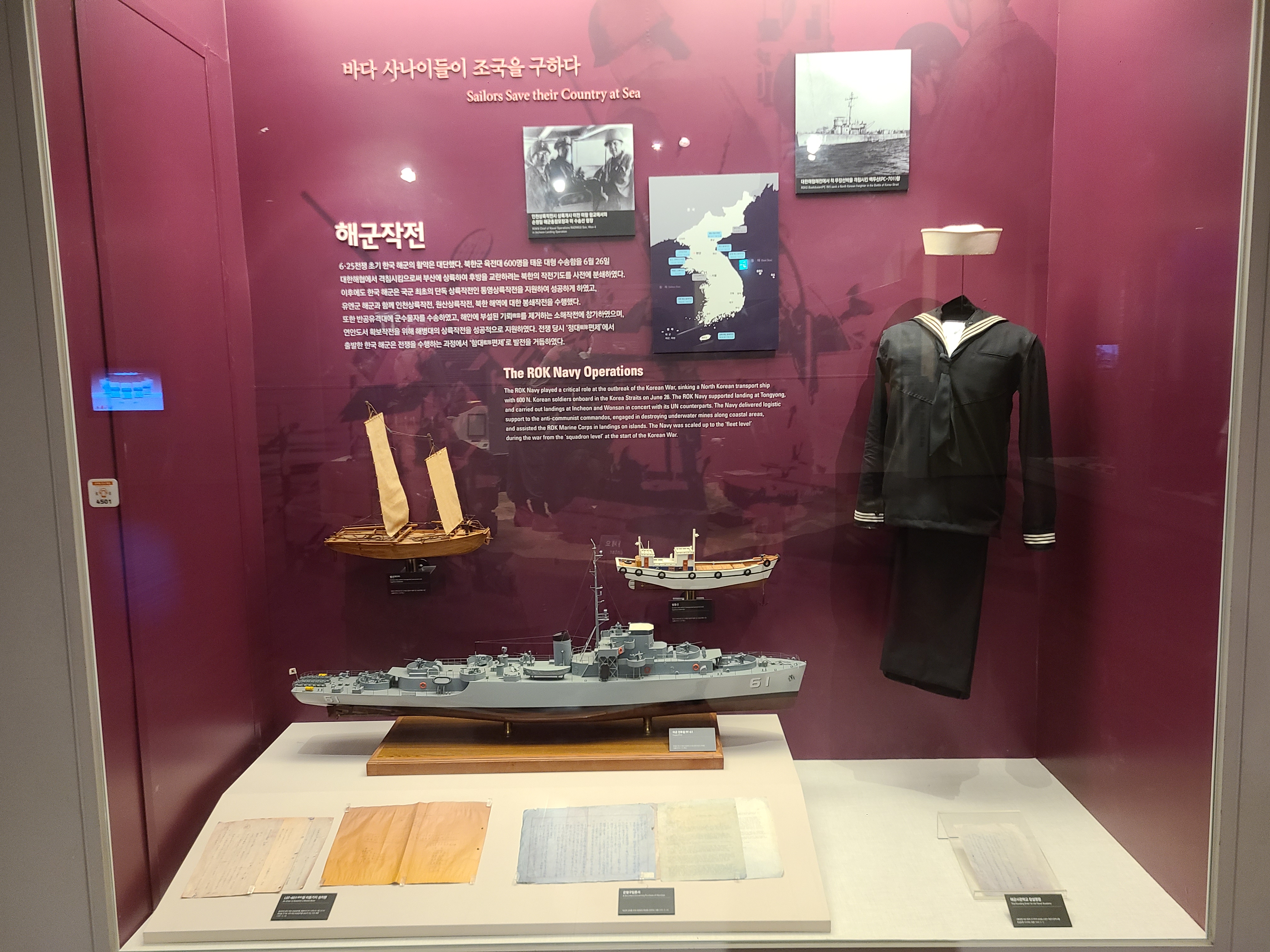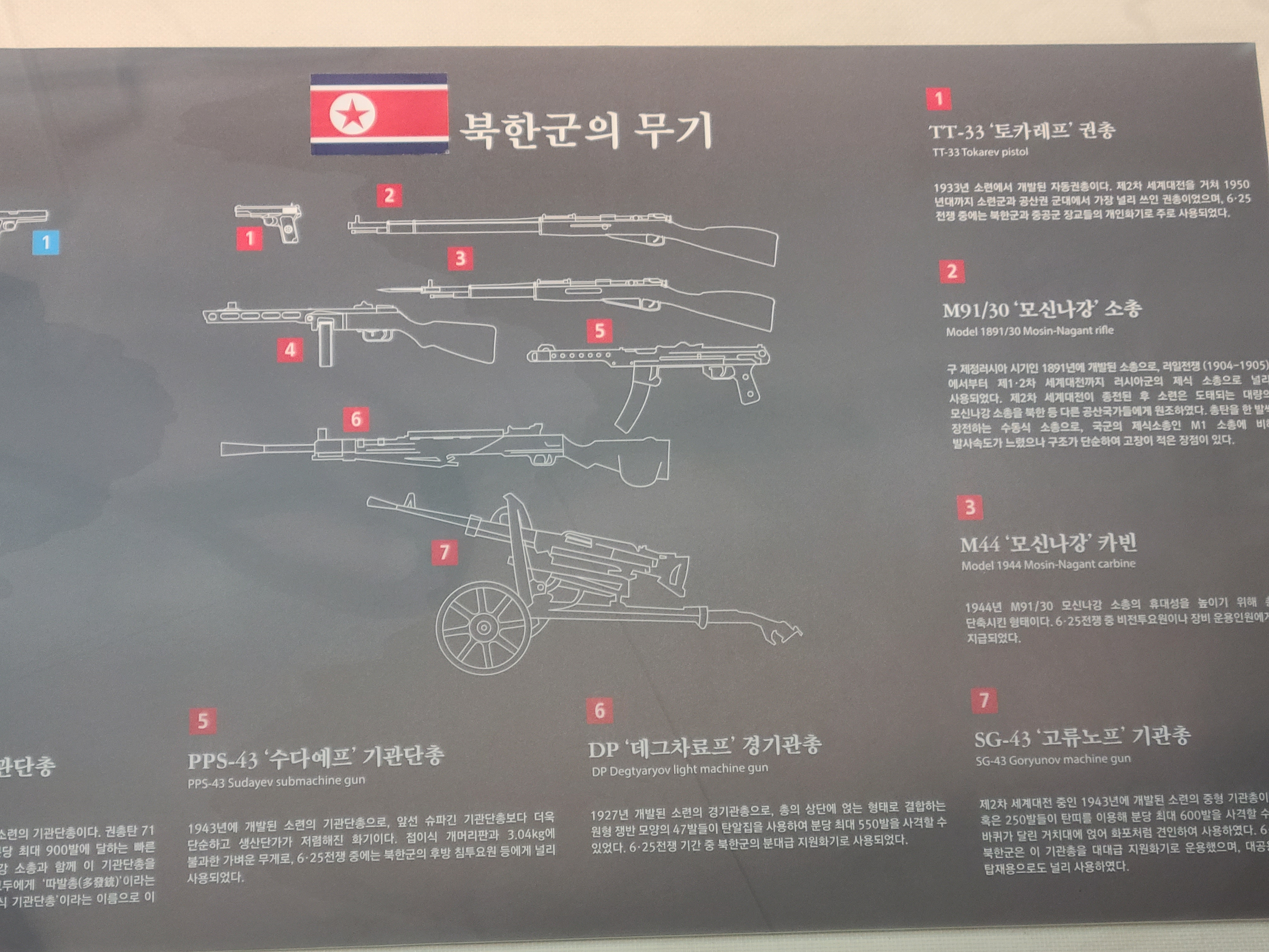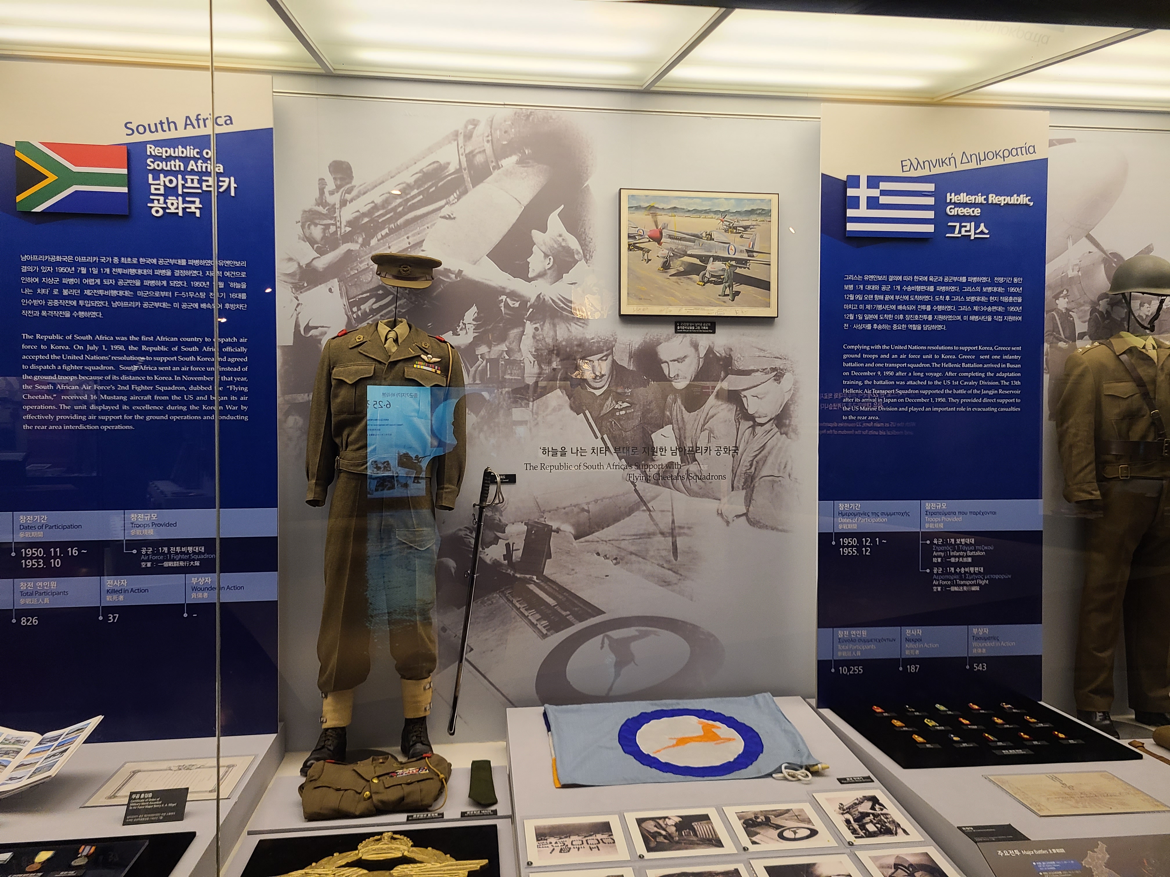 6.25 전쟁의 지도자들의 사진이 전시되었다. 왼쪽 부분에 6.25 전쟁의 양상을 바꾸었던 맥아더 장군의 사진도 있다. 많은 사람들이 희생을 치른 6.25 전쟁. 부산까지 밀렸던 남한은 다시 서울을 되찾게 된다. 그리고 서울 시청 앞에 대한민국의 국기를 다시 게양하는 쾌거를 이루게 된다. 그리고 인천 상륙작전으로 전세를 뒤집은 한국과 동맹군들은 그 기세로 중국 국경 가까이까지 치고 올라가게 된다. 북한이 남한을 침공하기 전 중국과 러시아에게 동맹을 요청한 북한. 남한이 승리의 기세로 밀고 올라오기에 중국은 북한의 동맹국으로써 군을 파견한다. 그 이름 유명한, 인해전술의 시작이었다.