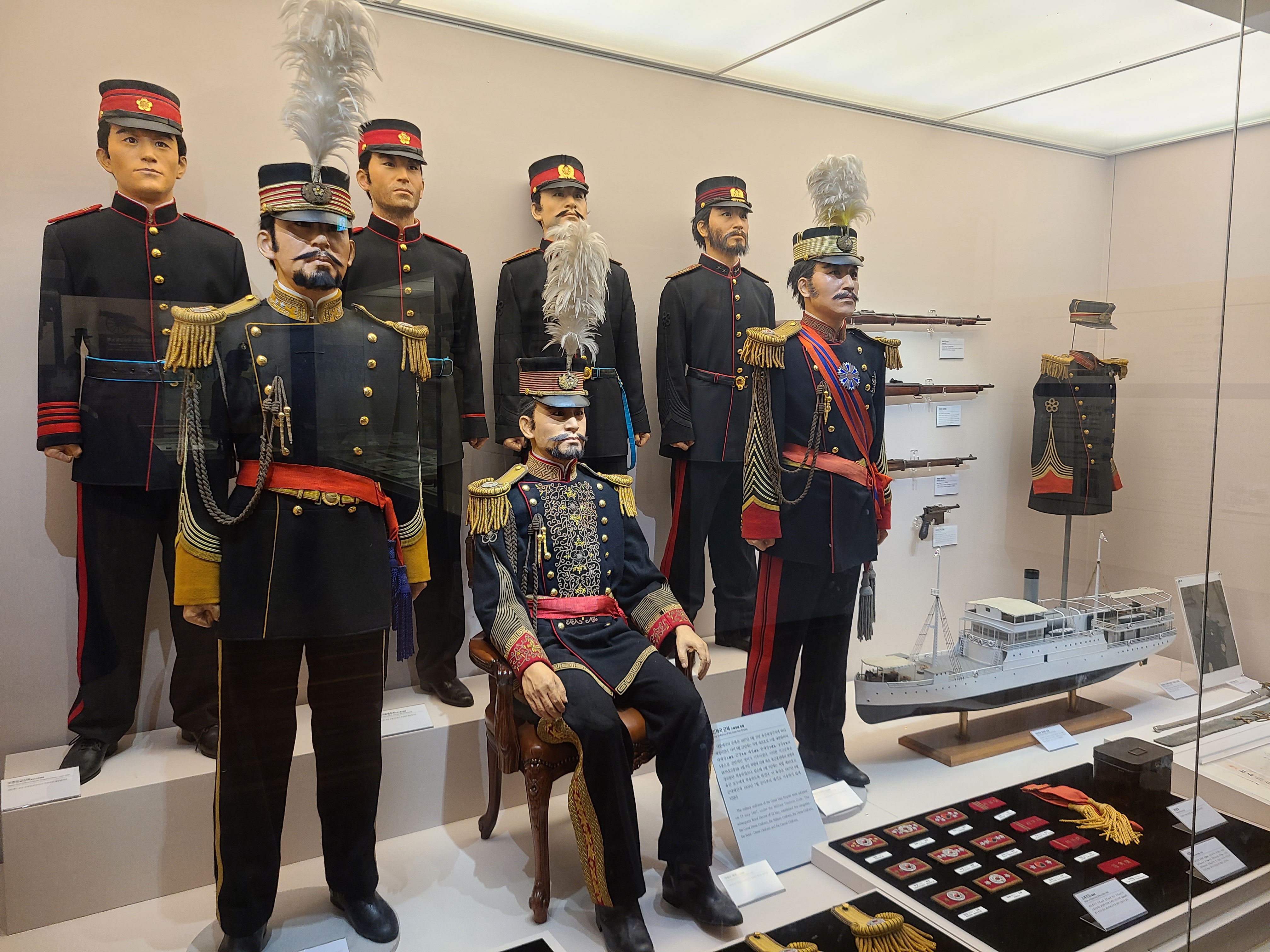 위로는 중국, 우측에선 일본, 조선시대에도 많은 외세의 침략이 있었다. 과연 우리는 다른 나라를 침략하지 않았는데, 왜 다른 나라는 우리나라를 이토록 여러 번 침략한 것일까? 그 의문은 해결하지 못하였다. 하지만 분명한 것은 국방을 강화해야 우리의 생명과 자산을 지킬 수 있음을 느끼게 되었다. 우금리 전투, 청산리 전투 등 조선시대에도 전쟁이 많았다. 특히 조선 후기에는 한복 중심의 의복에서 양복 중심의 의복으로 바뀌었고, 국군의 행사복도 양복 스타일로 변경되었다. 대한제국의 시작인 것이었다.