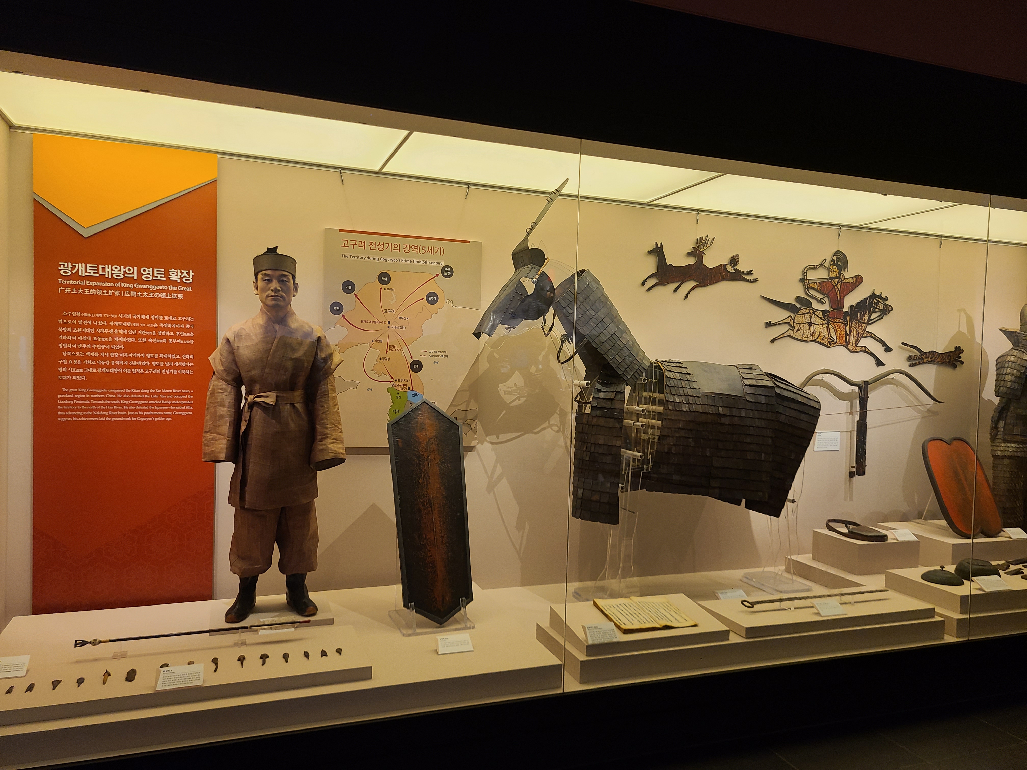 고구려 시대의 가장 큰 활약을 선보인 기마병이다. 빠른 기동력과 강력한 군의 기초가 되었다. 만약 광개토 대왕이 확장했던 땅까지 현재 우리나라의 영토가 되었다면 한반도의 크기는 지금보다 더 넓었을 것이다. 고구려 시대와 고려시대, 발해 시대 등 많은 전쟁을 겪으며 흘러온 우리의 역사. 그동안 희생되었던 사람들의 희생정신에 다시 한번 숙연해진다.