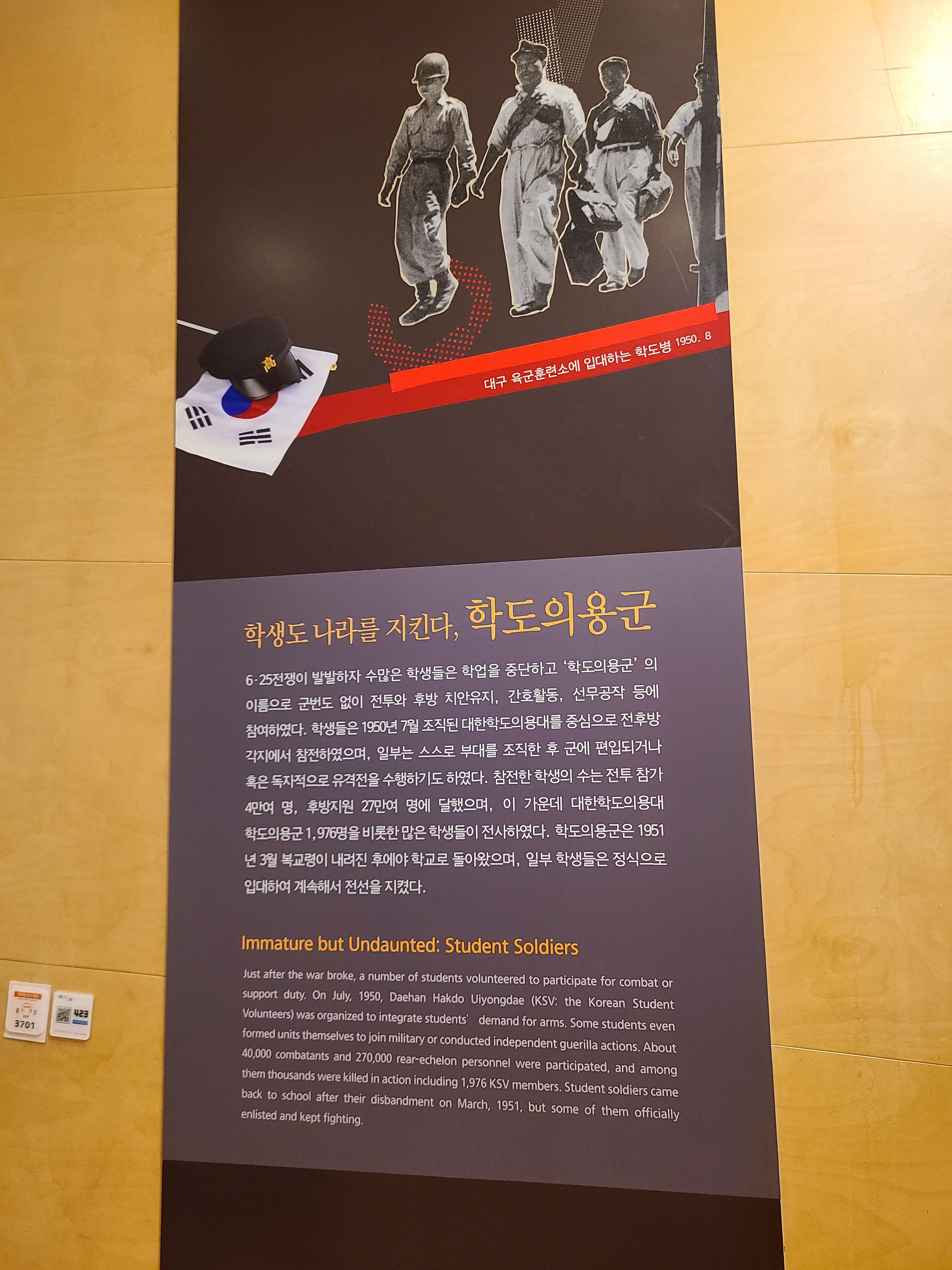 6.25 전쟁은 처음에 우리 국군의 엄청난 희생이 발생하게 되었다. 그리고 서울이 함락되고 대한민국의 주요 도시들이 함락되었다. 그리고 마지막인 부산으로 최후 후퇴가 되었고, 낙동강을 기준으로 격전을 펼치게 되었다. 국군이 전쟁에 고군분투를 하던 때에 많은 학도의용군이 전쟁에 참여하였다. 수많은 학생들이 학업을 중단하고 군번도 없이 전투와 후방의 치안유지, 간호활동 등을 펼치며 나라를 지키기 위해 몸을 던졌다. 이렇게 참여한 학생은 27만여 명에 달했다. 그리고 많은 이들이 전쟁으로 전사하게 되었다.