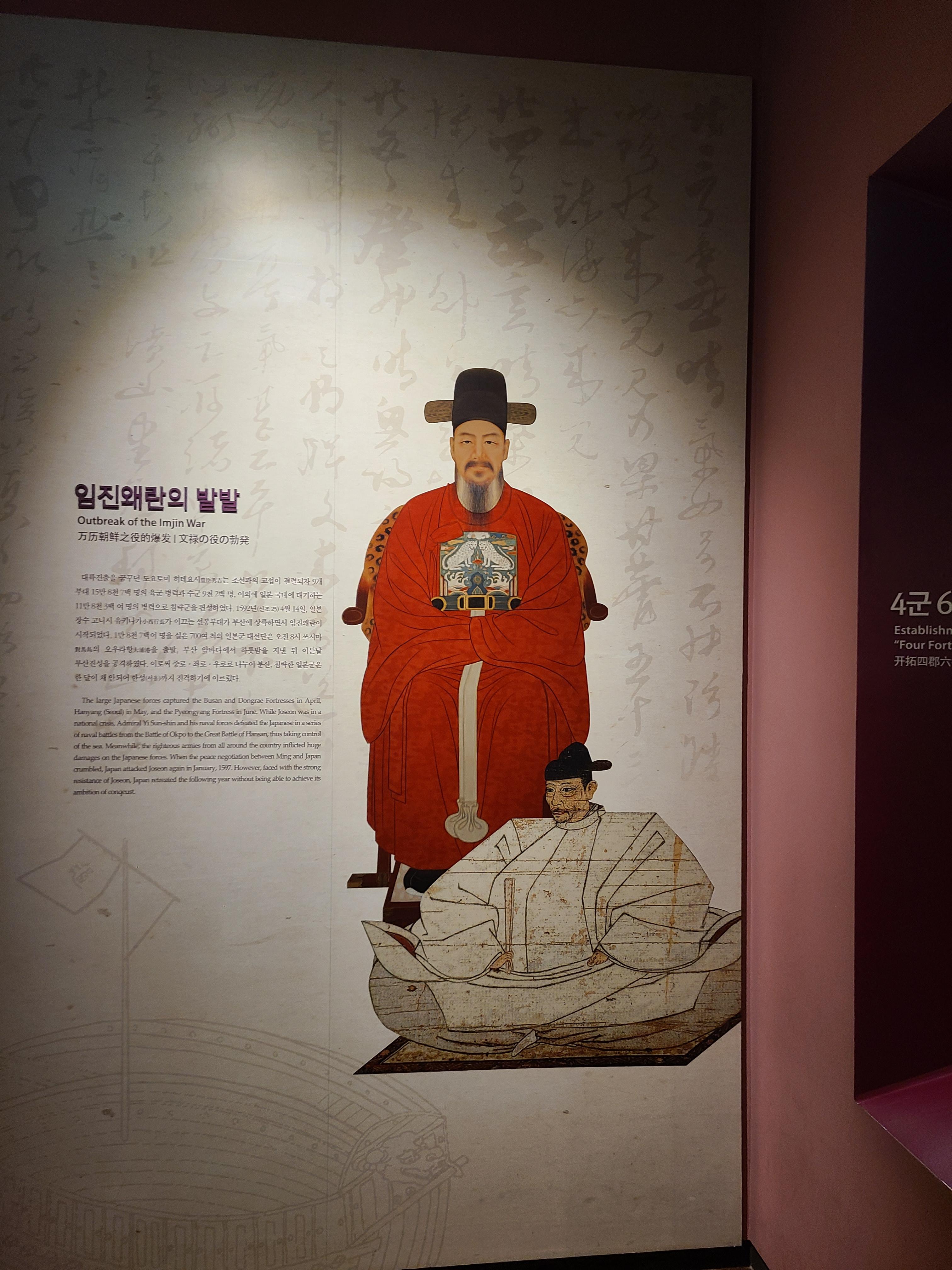 관람의 순서를 시간의 역순으로 돌게 되다 보니 더 와닿고 실감이 느껴졌다. 6.25 전쟁의 아픔과 교훈을 느끼고 다시 아픈 과거로 발걸음을 하기 시작했다. 그 시대의 순서는 조선시대와 일제강점기 순이었다. 우리나라 역사에 많은 아픔이 깃들어 있는 일제강점기로 다시 발걸음을 돌려본다. 조선시대의 큰 전쟁은 누구나 알듯이 임진왜란이다.