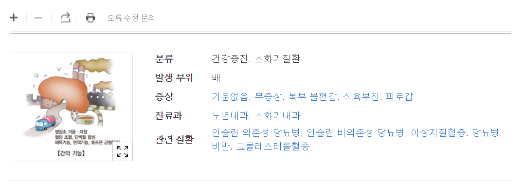 간은 우리 몸의 피로를 좌지우지하는 성분이며, 몸의 화학물질을 분해하는 화학공장으로 불립니다. 이러한 간은 체중의 증가로 인해 지방 성분이 쌓여서 지방간이 되기도 쉬우며, 각종 바이러스나 다른 원인으로 염증이 생기게 되는데 문제는 간은 침묵의 장기로 불릴 만큼 증상이 없으며, 증상이 나타났을 때에는 이미 많이 나빠진 상태가 됩니다.