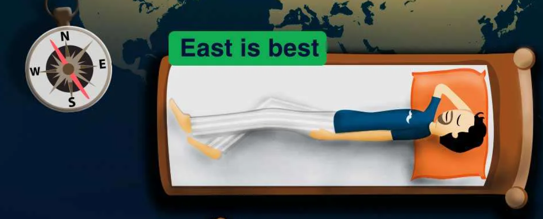 잠을 잘 때 머리를 동쪽으로 향하게 해야 합니다. 동쪽에서 떠오르는 태양의 활기찬 파동과 주파수로 인해서 몸은 수면 중에 좀 더 건강해지고 몸에 쌓여 있던 염증을 스스로 치유합니다. 따라서 동쪽으로 머리를 두고 주무실 경우에 건강과 활기찬 하루를 보낼 수 있습니다. 떠오르는 태양을 향해 머리를 두고 반대로 발을 두는 것은 태양의 에너지가 머리를 통해 몸속으로 들어오고 발을 통해 나감으로써 신체의 원활한 혈액순환과 기가 돌게 됩니다. 특히 학생들은 반드시 머리를 동쪽으로 향해서 잠을 자는 것이 학업에 큰 도움이 됩니다.