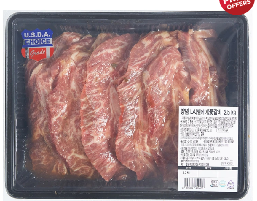 - 미국의 소 중에서 최상위 초이스 등급의 소고기로 만들어져서 육즙이 넘치고 고기가 전혀 질기지 않는 LA꽃갈비살