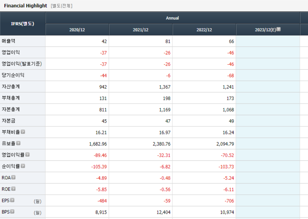 지난 몇 년간 매출액이 크게 증가하지도 않았으며 계속 적자가 지속되었다. 하지만 다행히 부채자산은 적은 편으로 자산총계는 건전해 보인다. 위에 설명한 것처럼 전 사업 부분의 매출증가로 실적의 턴어라운드가 예상되는 편이다.