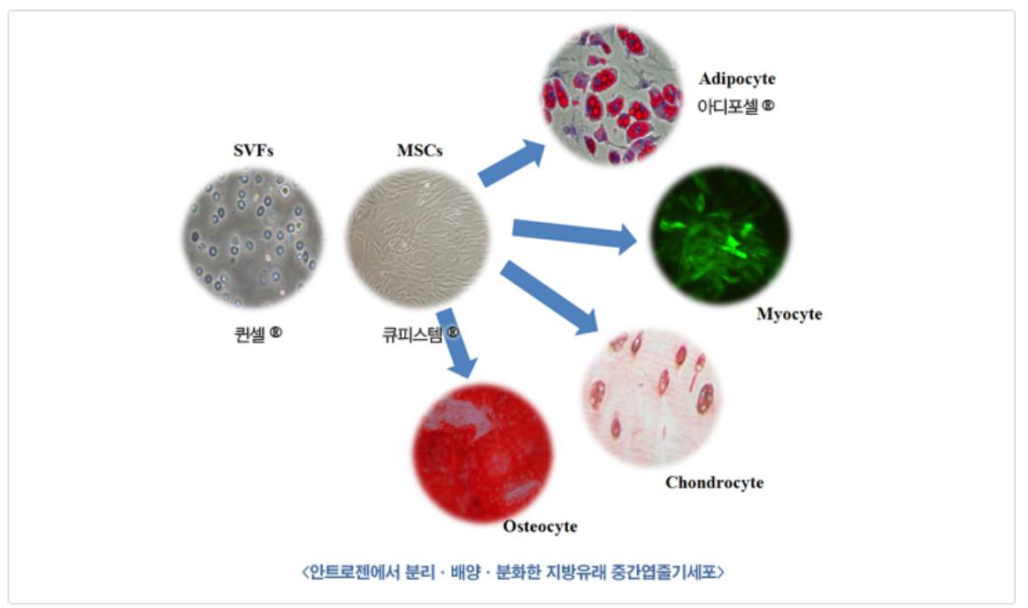 우리 몸의 구성품인 세포를 미분화 세포로 자가증식과 다분화능력을 만드는 기술을 가지고 있다. 따라서 지방조직은 신체 어느 조직보다 많이 존재하기 때문에 체외에서 증식하기가 쉽고 연골과 뼈, 지방, 근육, 신경세포로 분화할 수 있는 장점이 있다.