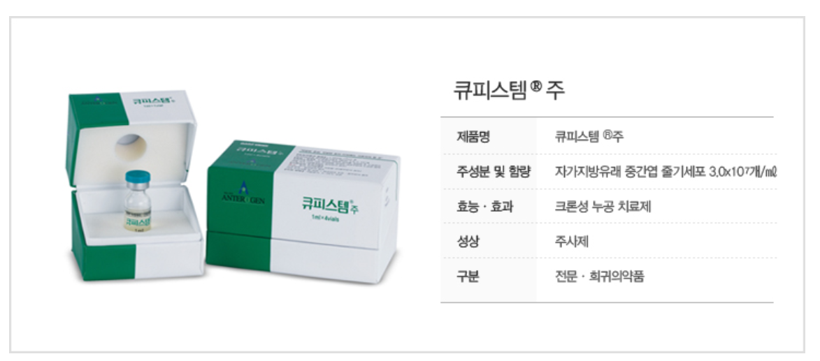 크론병 환자가 급증하고 있는 현대시대에 2012년 큐피스템이라는 줄기세포 치료제를 품목허가 받았다.