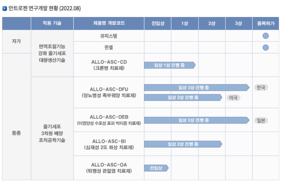 지방유래 줄기세포를 통하여 희귀 난치병을 치료하는 치료제를 개발하고 판매하는 바이오 기업으로, 안트로젠의 전 사업 부분에서 매출이 증가하고 있다.