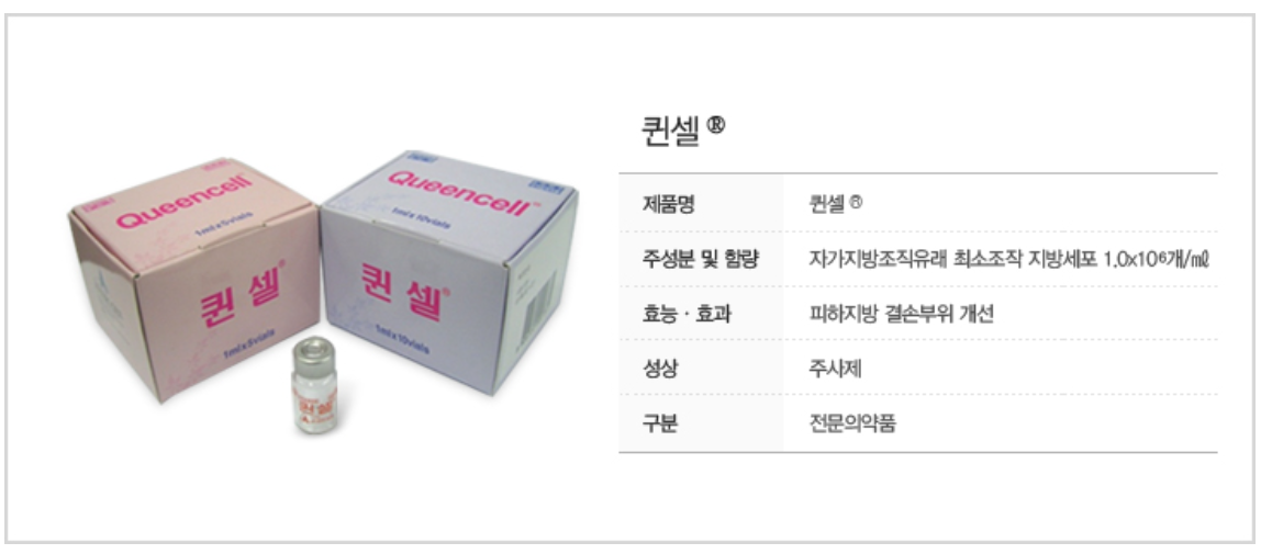자가지방유래로 지방세포 퀸셀이 국내 1호 첨단바이오의약품으로 지정됨.