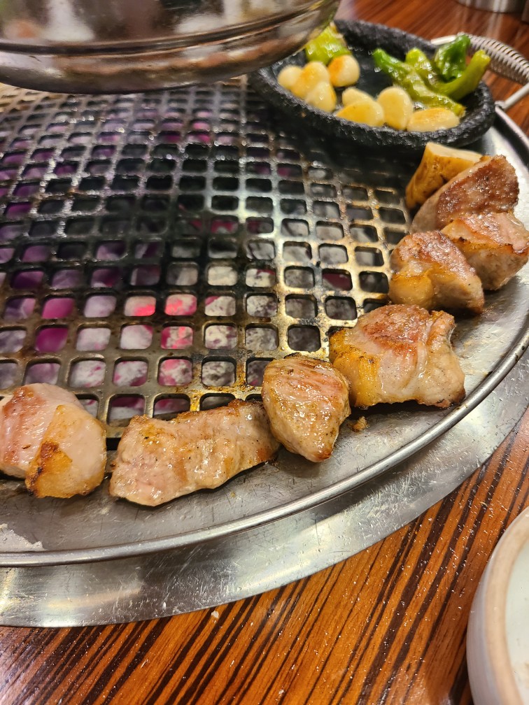 겉은 바삭하고 속은 촉촉하게 익혀주는 불판이 특징이었어요. 백화탄도 한몫을 했고요.