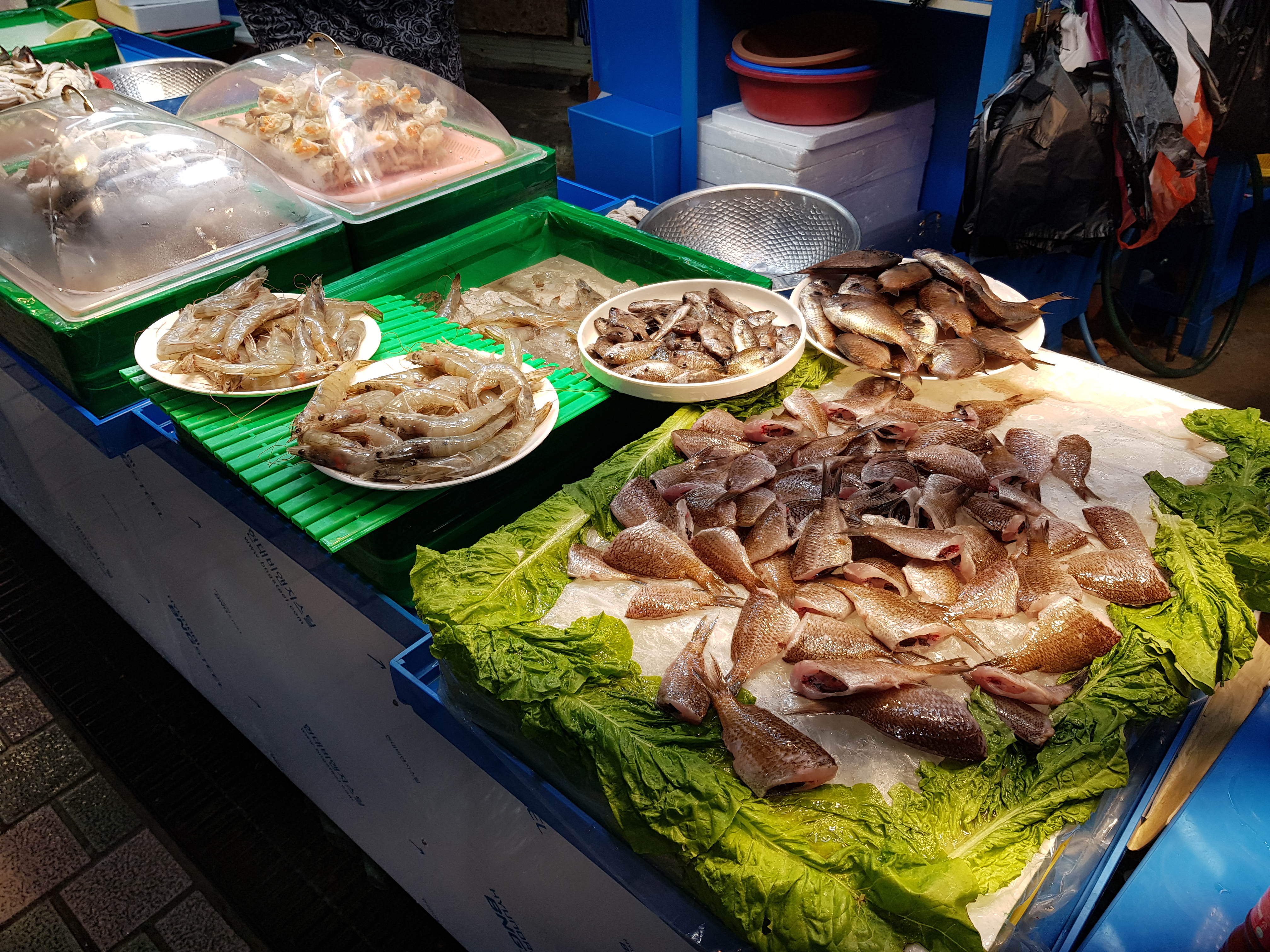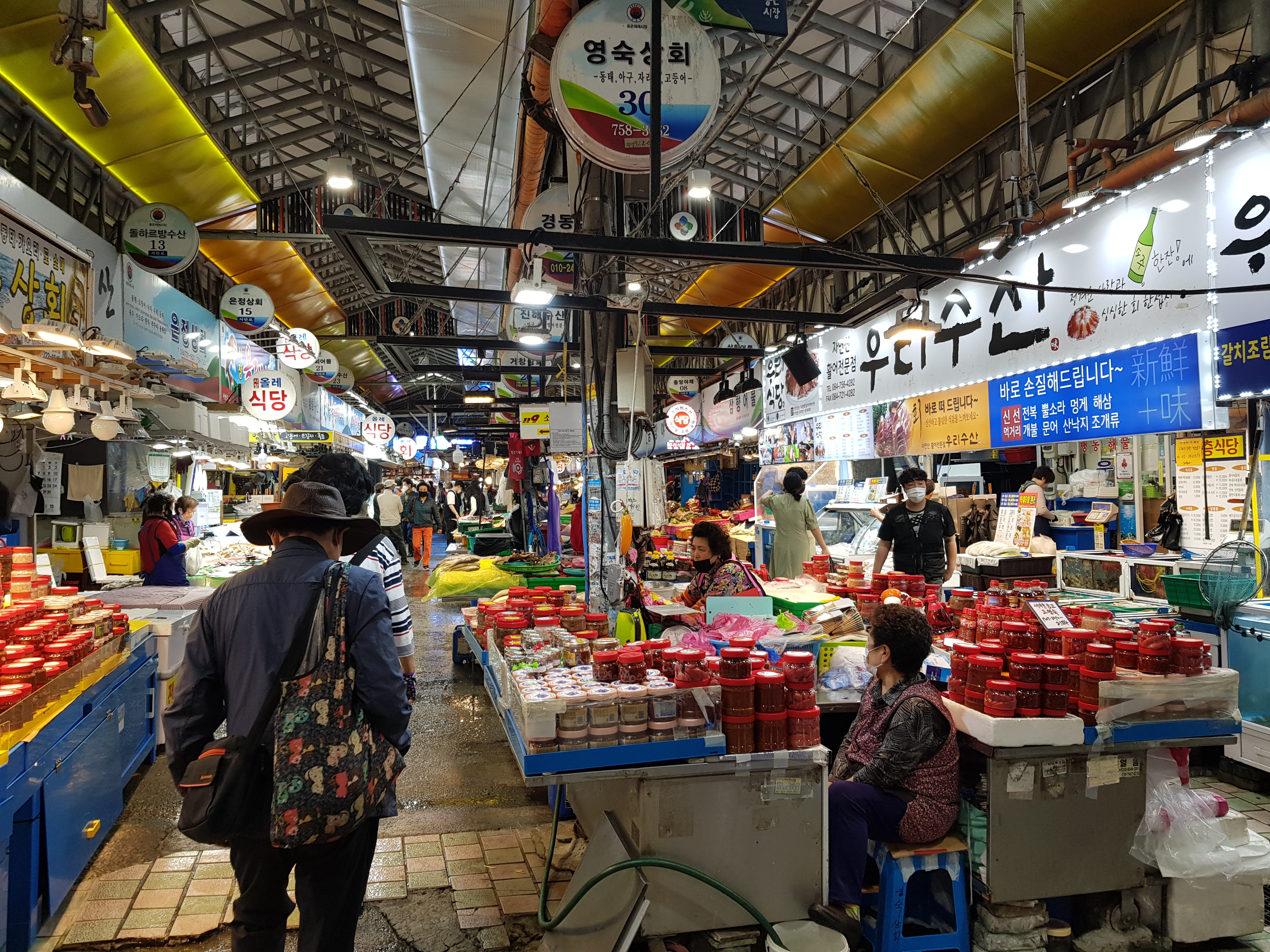 동문 시장 중간 쯤 들어온 곳이다. 이곳은 젓갈류와 횟감을 파는 가게들이 몰려 있다. 대체로 한산해 보인다. 코로나 때문인가 ㅠㅠ