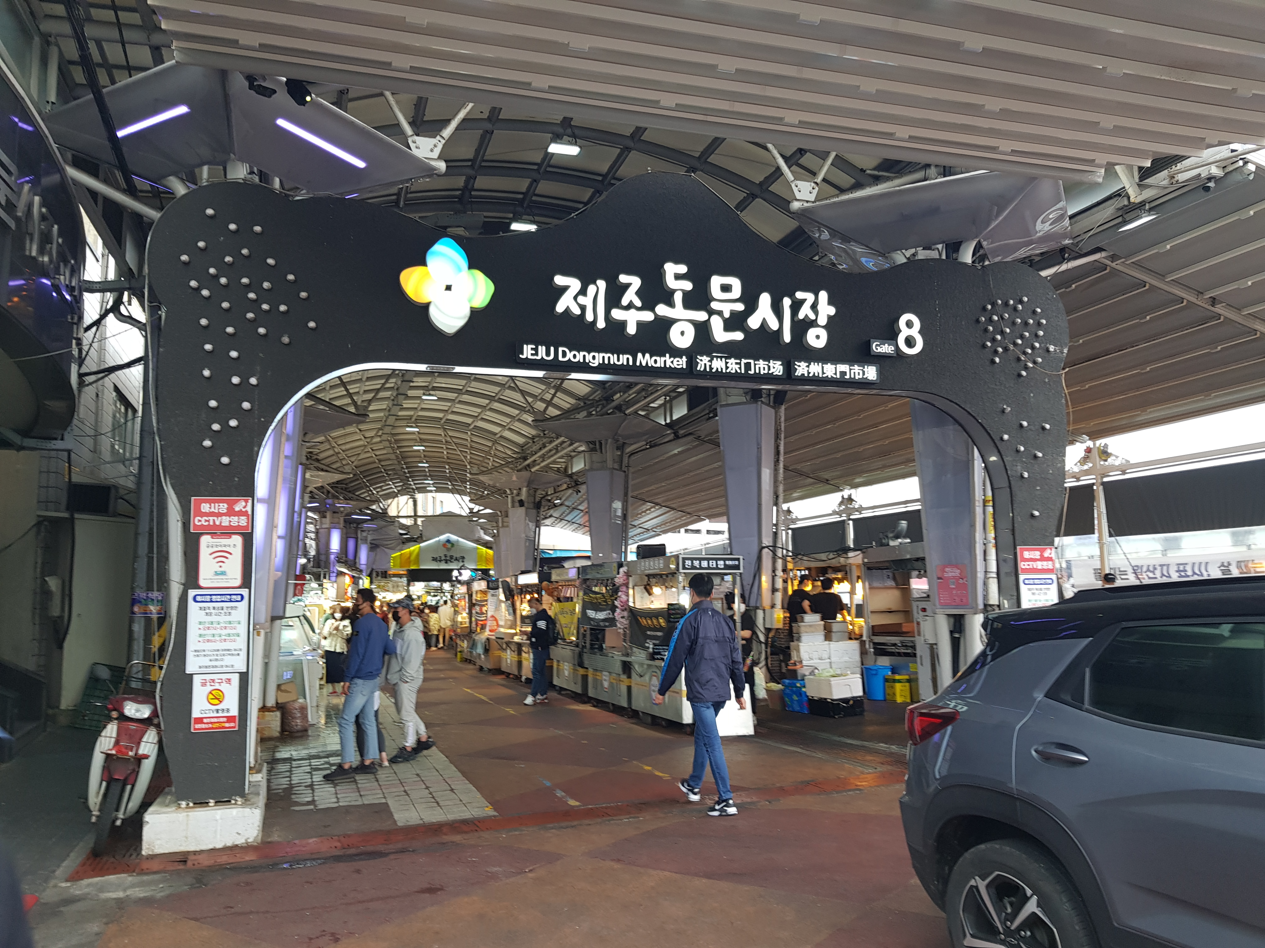 동문 시장에는 약 3개의 큰 입구가 있다. 이곳은 게이트8로 표시된 입구이다. 동문시장이라고 써있는 문을 통과하면 먹자 골목들이 즐비해 있다.