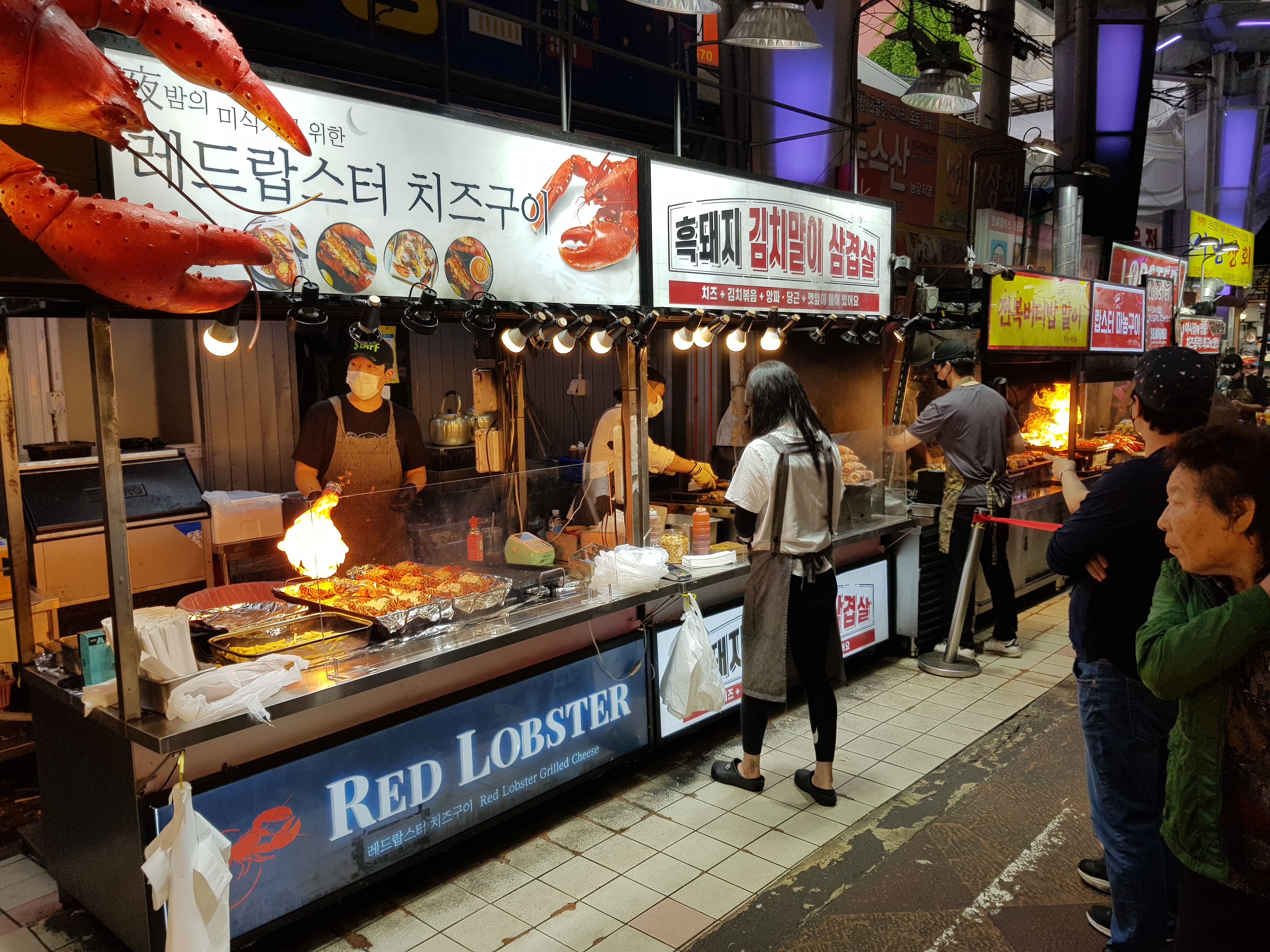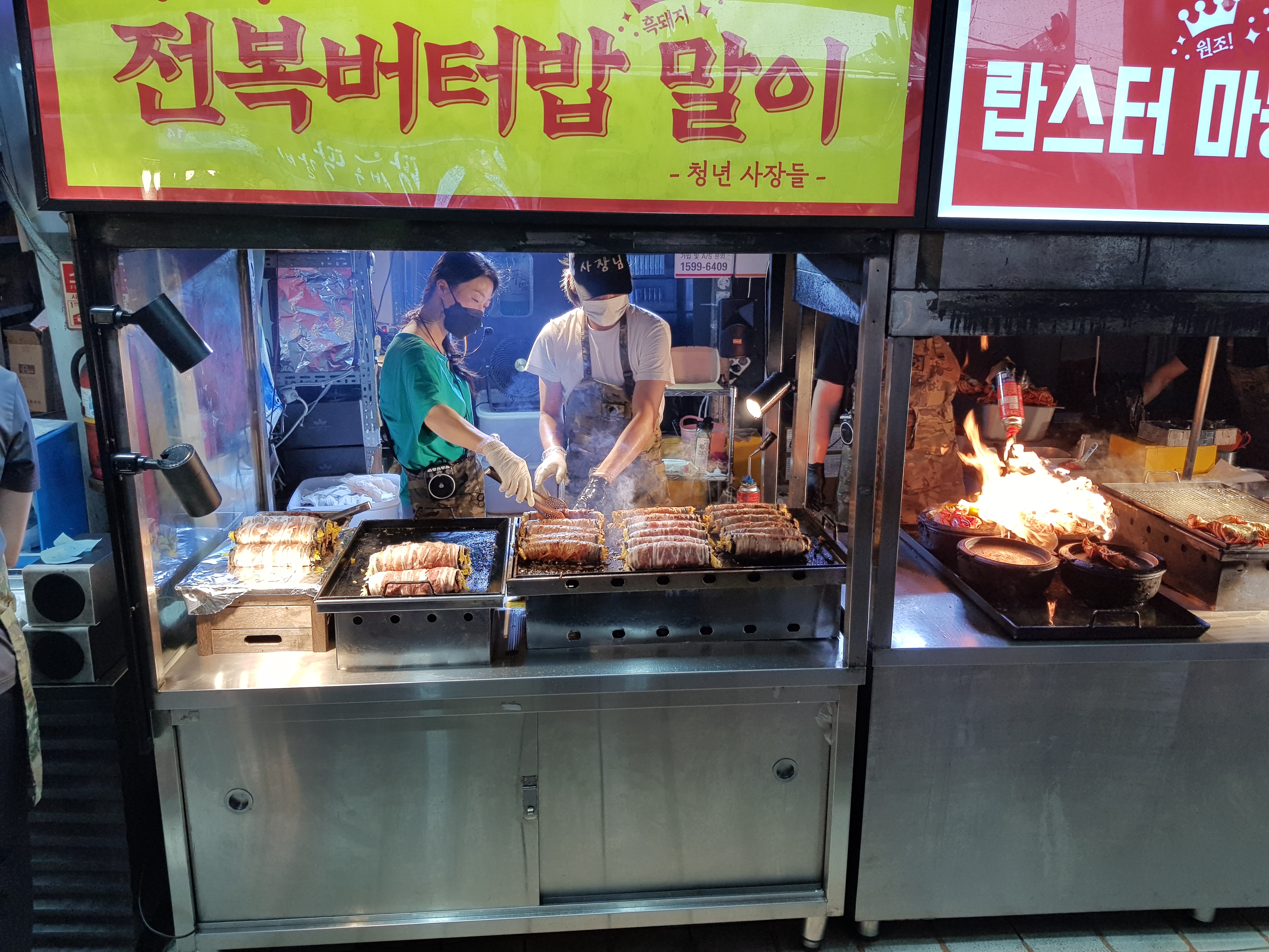 많은 먹거리가 있지만 맛있어보여서 찍게 되었다. 전복버터밥 말이가 요즘 대세인지 대기줄이 길었다.