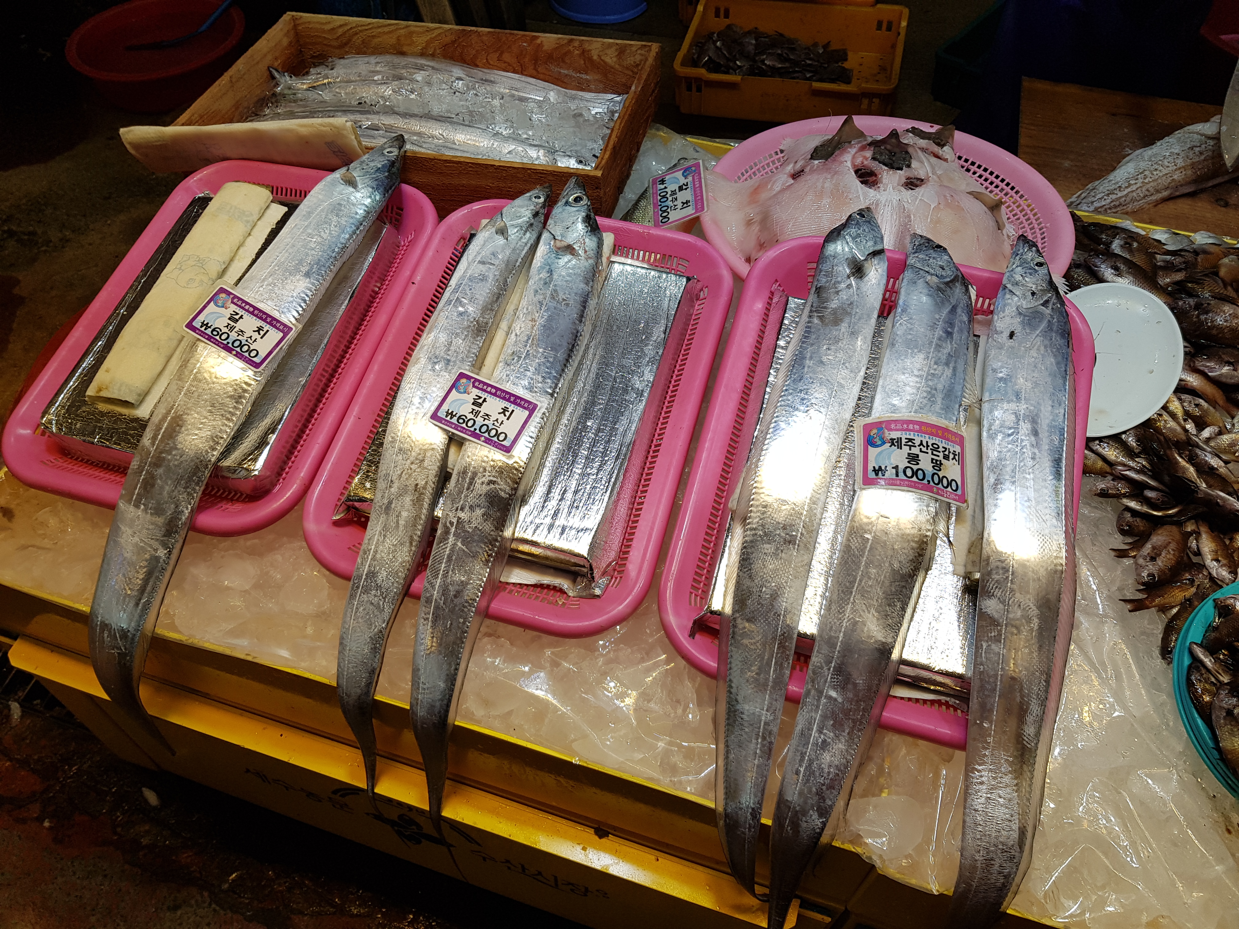 언제부터인가 갈치가 금갈치다. 보통 5지가 넘는 크기이다. 여기서 지는 손가락마디 두께를 뜻한다. 2지는 손가락 두개 두깨. 3지는 3개. 저 갈치는 손가락 5개 두께이다. 3마리에 10만원 ㅎㅎ후덜덜...
