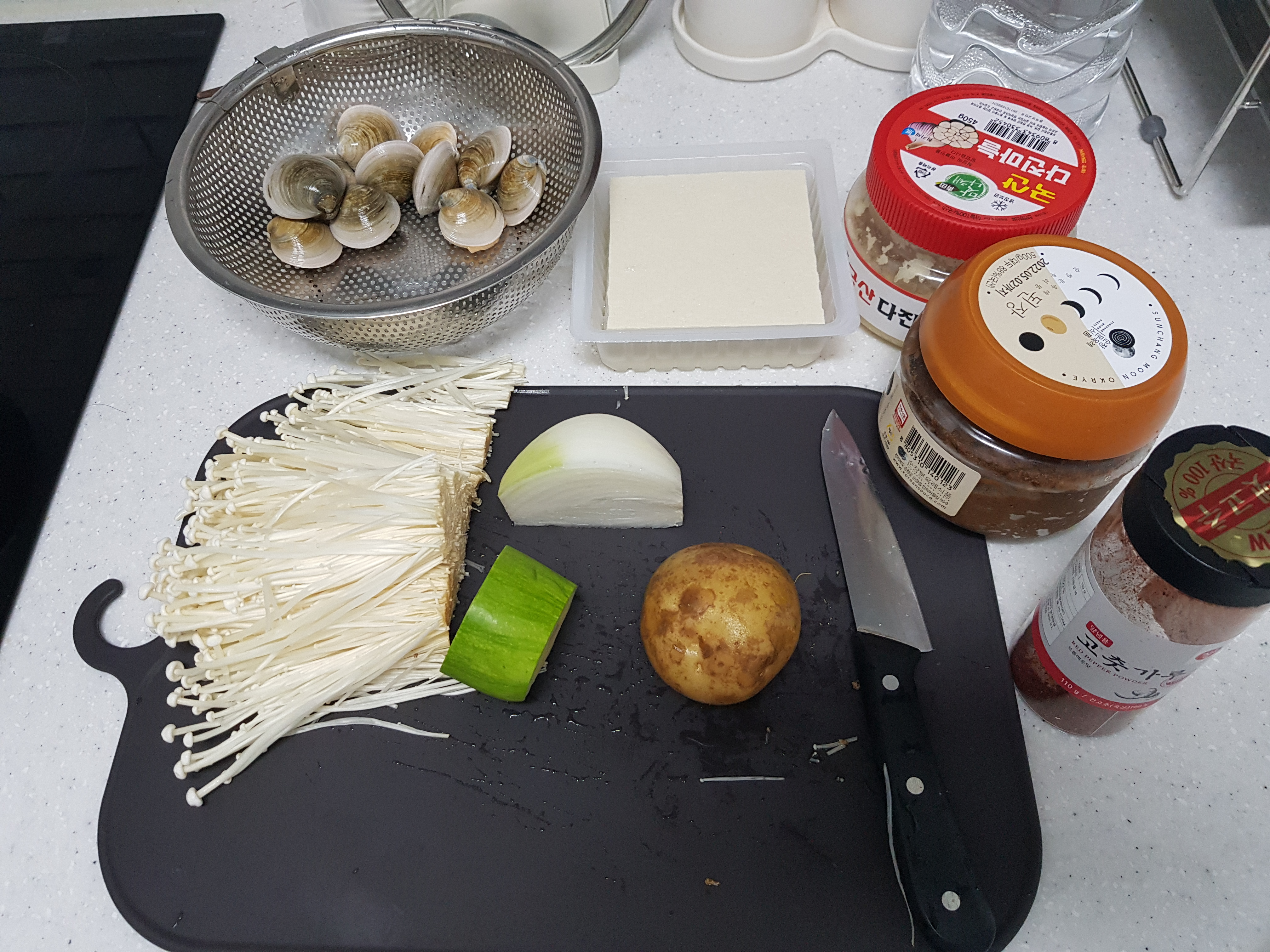 - 조개 한 주먹(취향에 따라서 돼지고기, 꽃게, 냉이나물 등 무방해요)