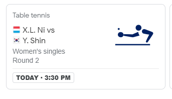 오늘 7월 25일 3시 30분에 여자 단식 경기가 예정되었다. 본인의 실력발휘를 힘껏 할 수 있도록 우리 모두가 응원하자.