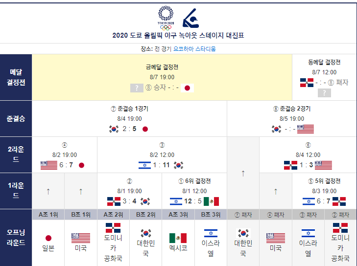 4. 도쿄 올림픽 야구 대진표