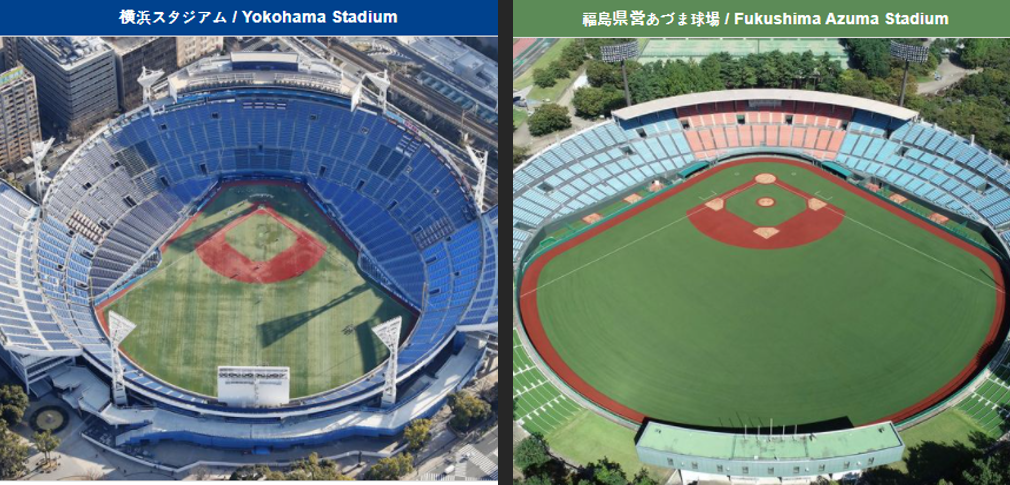 올림픽임에도 불구하고 이번엔 도쿄 돔과 메이지 진구 야구장에서는 경기가 열리지 않아서 많이 아쉽습니다. 개막전이 열렸던 후쿠시마 아즈마 구장의 경우는 경기장 옆에는 방사능 오염된 흙들이 모아놓은 자루들이 많이 쌓여있는 사실이 공개되면서 많은 우려를 만들었습니다. 도쿄 돔의 경우에는 주변이 번화가이기 때문에 경비나 경호 등이 어려워서 열리지 않은 것으로 보입니다. 후쿠시마현영 아즈미 구장은 30000명, 요코하마 스타디움은 32170명 수용이 가능합니다.