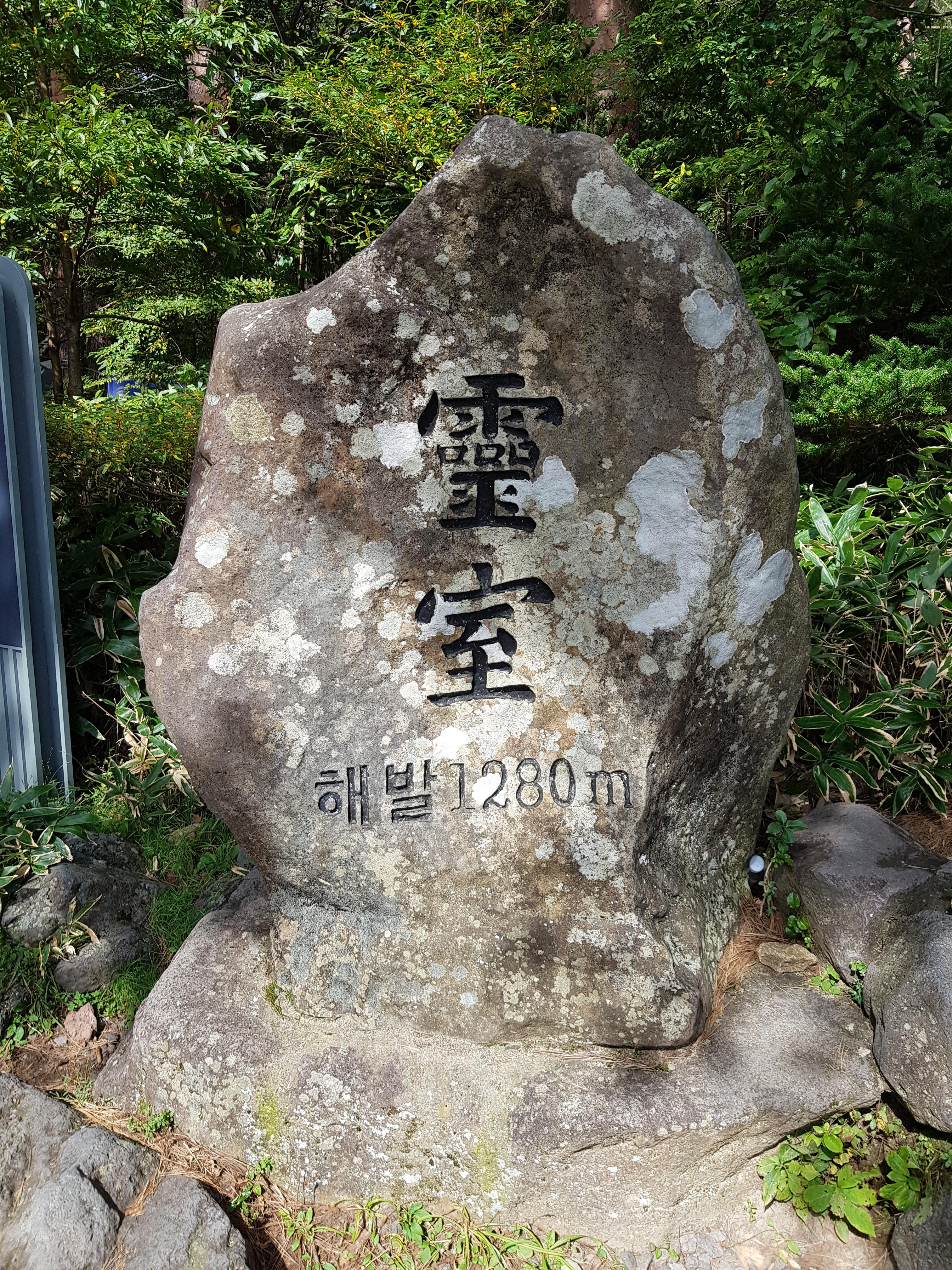 영실 코스의 터줏대감. 바로 영실이라고 쓰여있는 돌덩이입니다. 한자로 영실과 해발 1280m라고 쓰여 있어요. 한라산의 해발은 1950m로 영실까지 차로 도착했다면 실제로 등반하는 높이는 약 700m가 안 되는 것이겠죠? ㅎㅎㅎ
