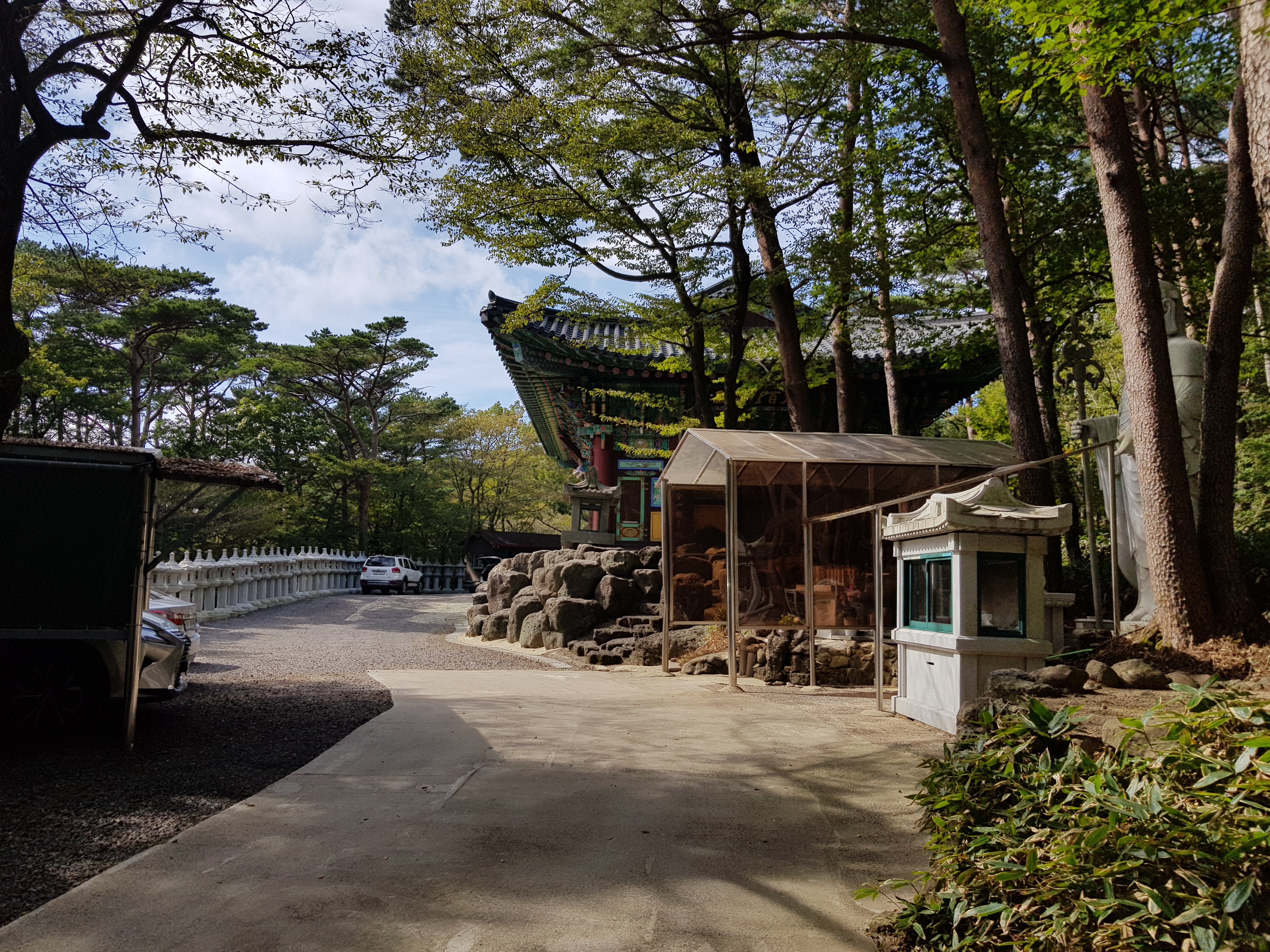 영실 등반 코스 개찰구 옆에 작은 샛길이 있었습니다. 작은 절관이 세워져 있어서 호기심에 들어가 보았습니다. 이름은 오백나한전입니다. 영실은 수많은 묵객들이 즐겨 찾았던 명소이며, 또한 많은 고승들이 수행하였던 성지였다고 합니다. 때문에 지금도 영실 주변에는 암자의 건물지 등이 남아 있습니다. 서귀포시 하원동 영실 영원사의 창건 년대는 미상이나, 1970년대까지만 하여도 수행승들의 수행 처소가 5~6개소가 있었는데 이곳도 그중 하나였습니다. 지금의 오백나한전은 1982년 대한불교 조계종 조정을 3대나 역임하였던 고암 대종사께서 이곳에 안거 하는 동안, 대종사의 손상좌인 학균 스님에 의하여 최용주 거사의 설판으로 중창되었다고 합니다. 오백나한전 내에는 철조비로자나불상과 불석으로 만들어진 오백나한좌상이 모셔져 있으며 2011년에 현재 규모로 수리되었다고 합니다.
