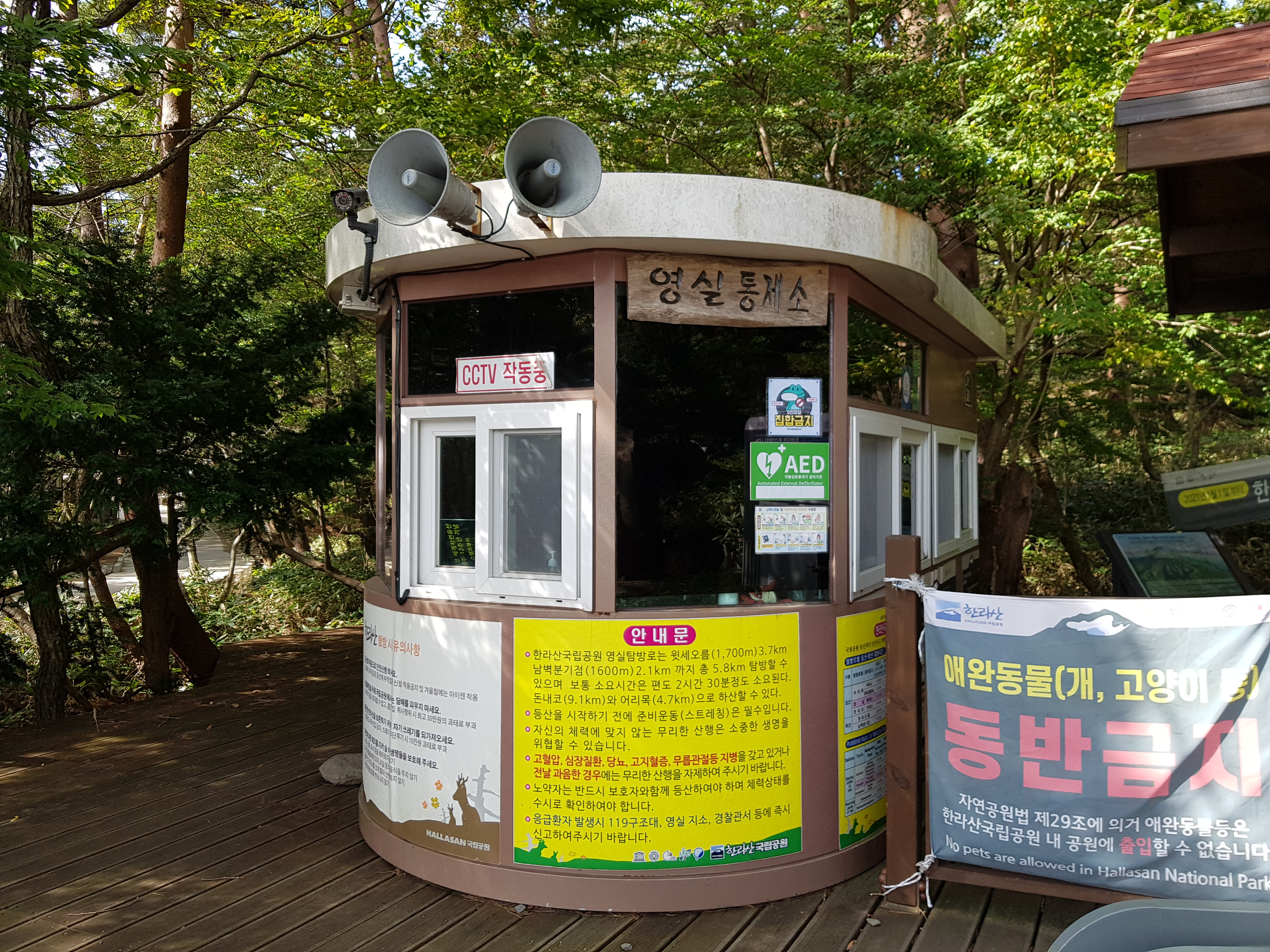 영실 등반 코스 앞을 지키고 있는 영실 통제소. 안에서 관련자 분들이 탐방객 분들을 도와주고 있습니다.