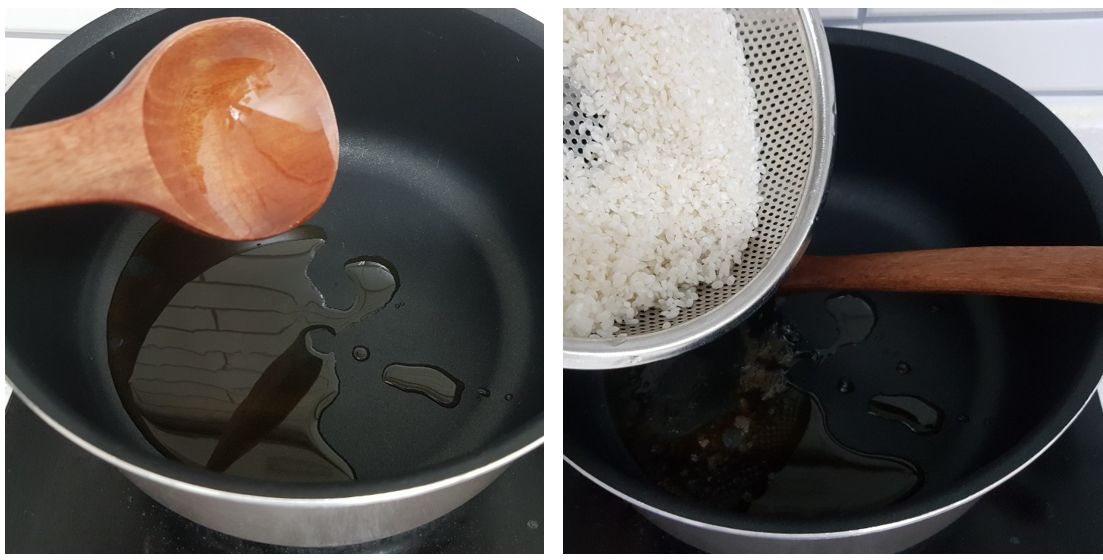 3. 쌀을 참기름으로 볶아주세요