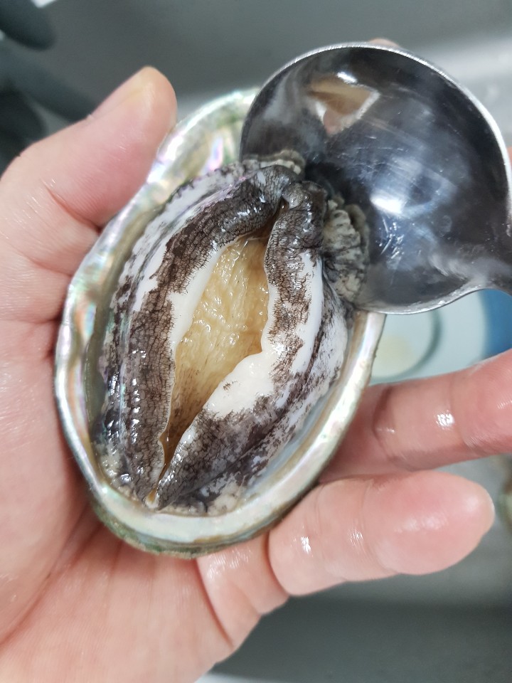 전복은 돌이나 미역 같은 해조류에 딱 붙어서 영양분을 흡수하기 때문에 이물질이 조금씩 붙어 있습니다. 이왕이면 전복에 붙은 이물질을 제거하면 좋아요.