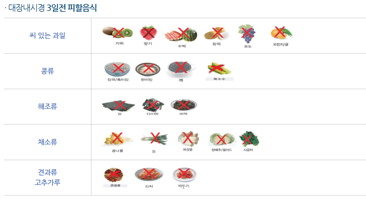 대장내시경 3일전 피해야 하는 음식이에요.