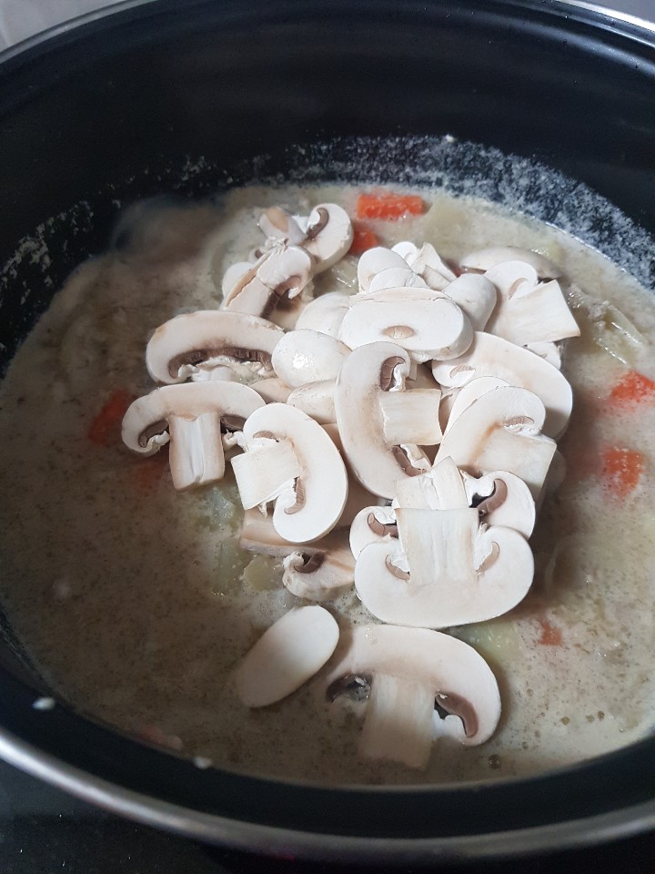 그리고 끓기 시작하면 양송이버섯도 넣어주세요!