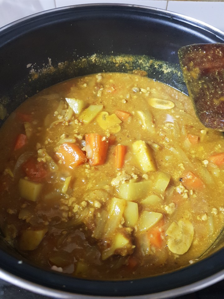 재료를 손질하고 볶아주고, 물을 넣고 끓이고 카레가루를 넣어주면 끝이에요.