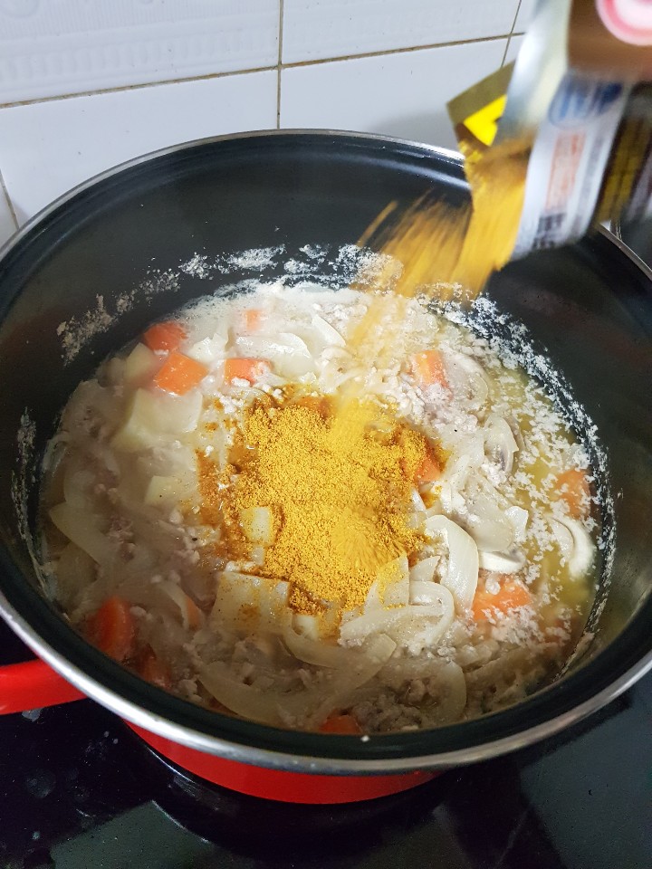 카레 가루는 한 번에 넣어버리면 뭉쳐서 풀어내기 귀찮아 지니까 주의하세요!