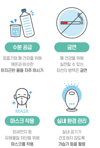 - 연기나 오염에 노출되어 목과 폐의 점액질이 이물질을 차단할 때