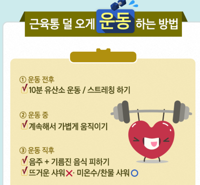 - 근육통이 사라질 때까지 근육 운동은 멈춰주세요.
