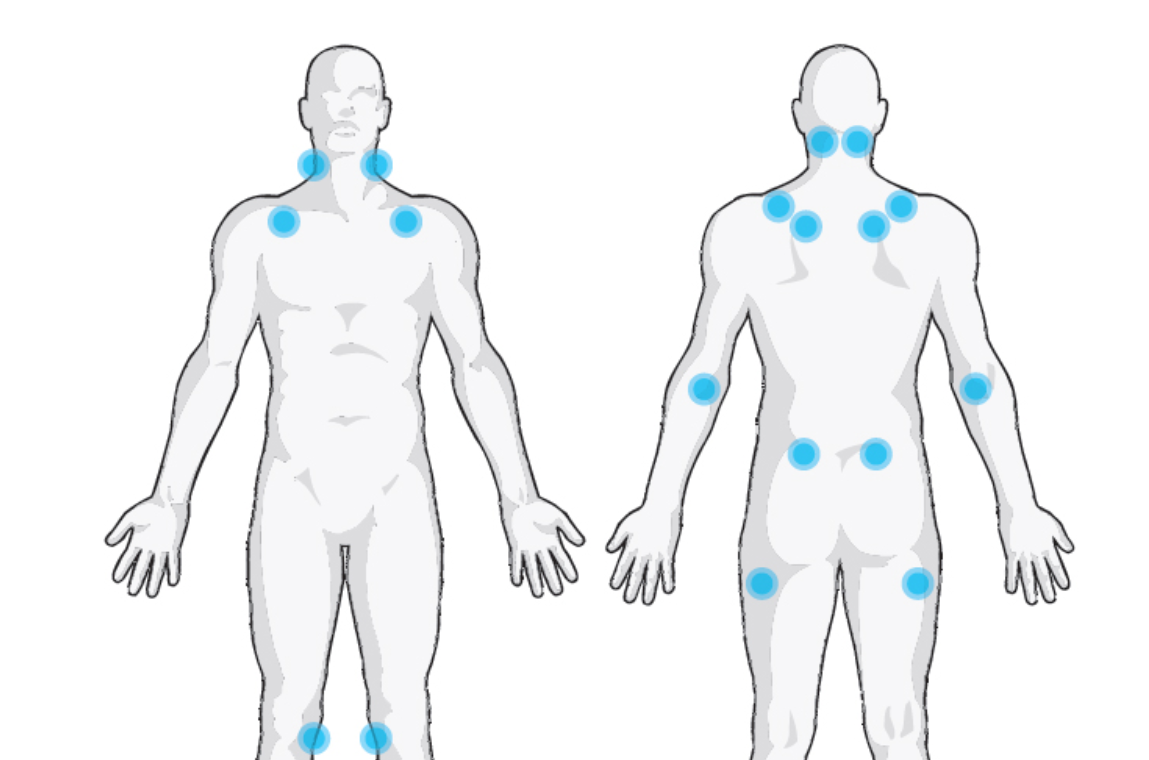 - 근막이라고 하는 근육 결합 조직에 염증을 일으키는 근막 통증 증후군