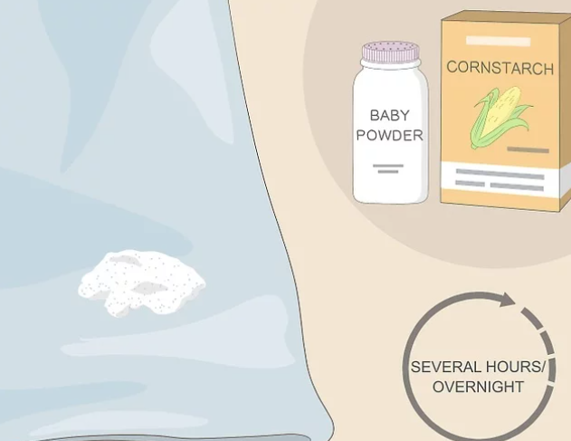 둘째. 위에 설명한 것과는 다르게 얼룩에 베이비파우더나 전분을 뿌려주는 방법을 택하는 것인데요!