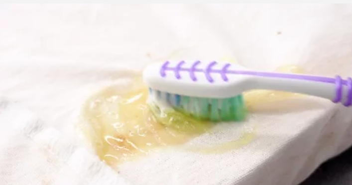 넷째. 부드러운 솔이나 칫솔로 가볍게 얼룩을 문질러줍니다.