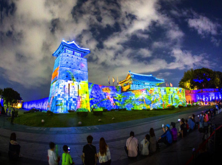 3) 저녁에 최고의 아름다움을 뽐내는 수원화성입니다. 이곳은 거중기, 활차, 녹로 등 다양한 신기술이 접목된 발명품과 동서양의 축성방법의 건축을 자랑하는 곳입니다. 수원화성은 4개의 성문이 전부 가지각색의 특색이 있어요. 유네스코 세계문화유산으로 지정된 아주 아름다운 곳입니다. 대한민국 으뜸 관광명소, CNN이 선정한 아름다운 50곳에 선정되었어요. 특히 야간에 조명의 아름다움과 호수에 비추는 달빛이 정말 장관입니다.