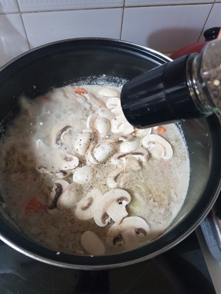 그리고 끓기 시작하면 양송이버섯도 넣어주세요!